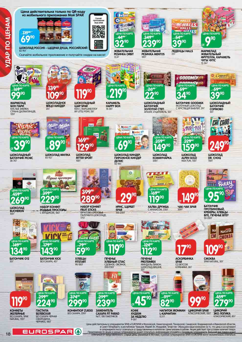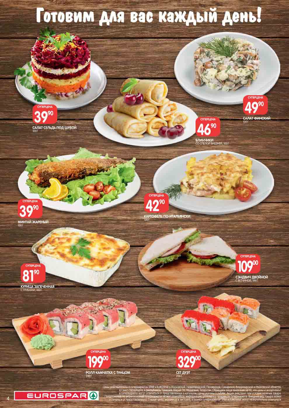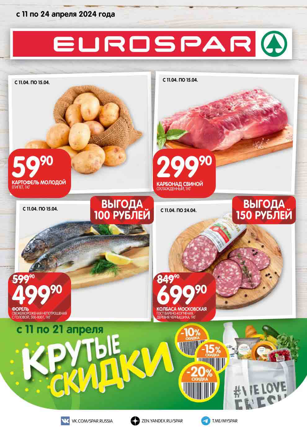 На страницах каталога ЕВРОСПАР вы найдете все свои любимые товары, которые сейчас предлагаются в супермаркете. Не пропустите последние специальные предложения и сэкономьте на покупках. Цены по акции ЕвроСпар действуют в городах: Москва, Химки, Красногорск, Одинцово, Краснознаменск, Кубинка, Климовск, Жуковский, Видное и других населенных пунктах Московского региона.