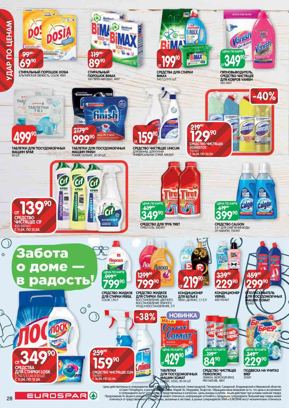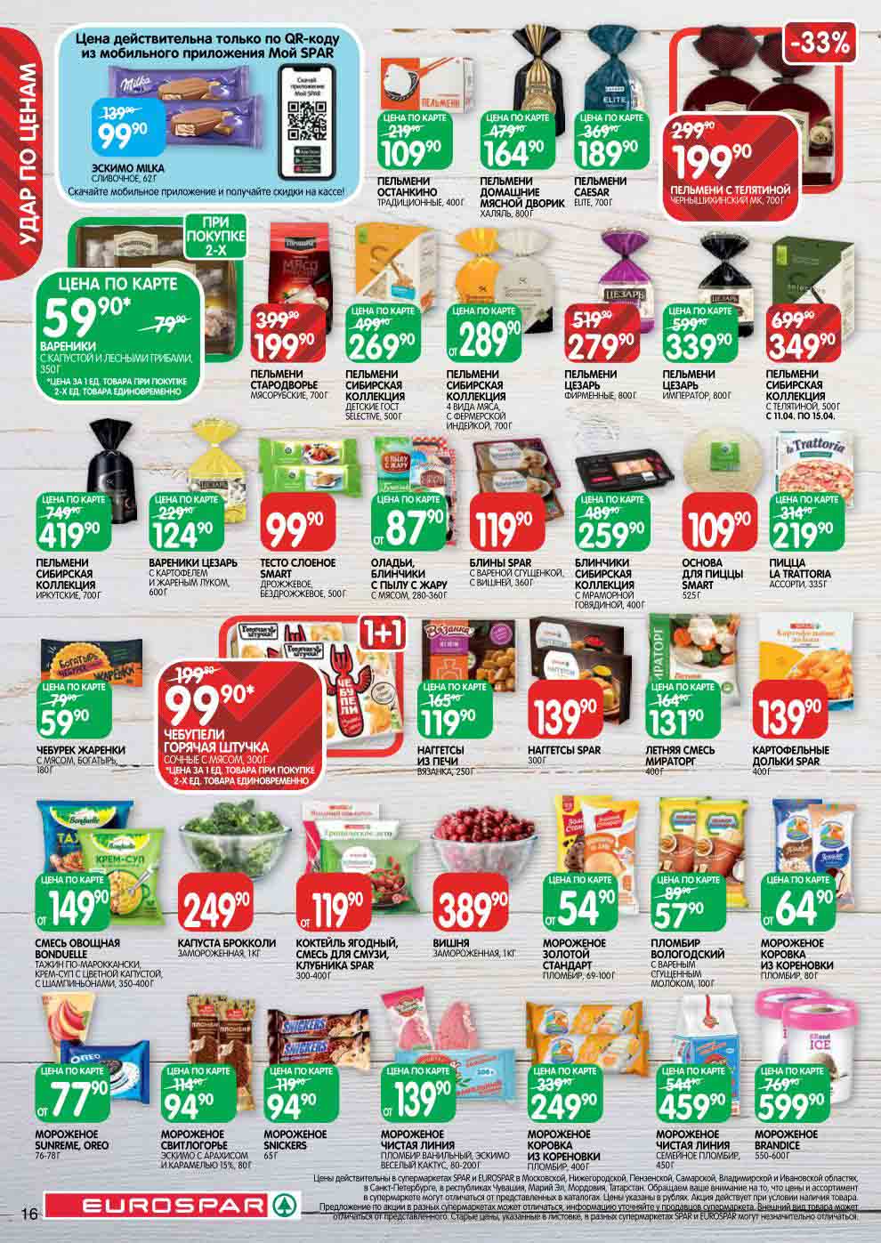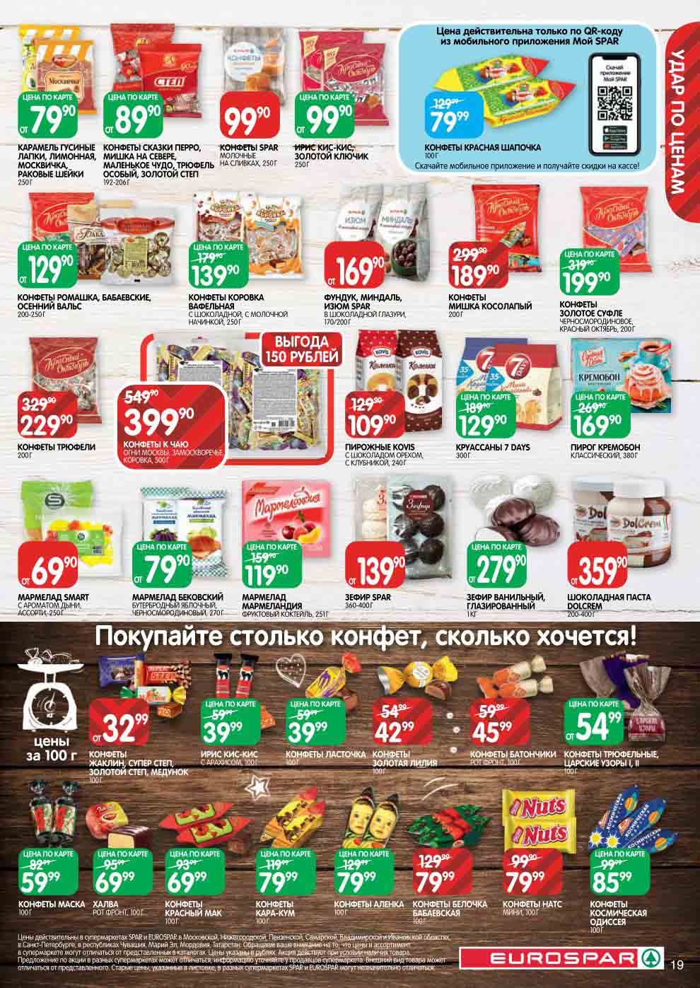 На страницах каталога ЕВРОСПАР вы найдете все свои любимые товары, которые сейчас предлагаются в супермаркете. Не пропустите последние специальные предложения и сэкономьте на покупках. Цены по акции ЕвроСпар действуют в городах: Москва, Химки, Красногорск, Одинцово, Краснознаменск, Кубинка, Климовск, Жуковский, Видное и других населенных пунктах Московского региона.