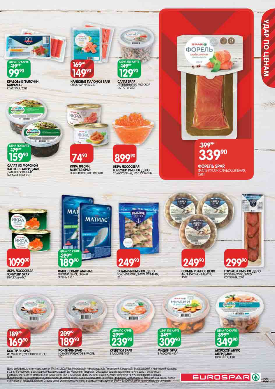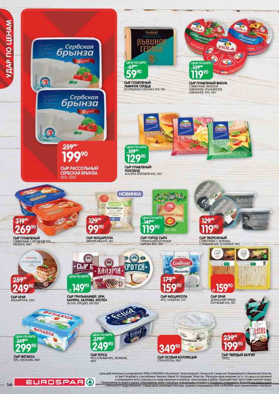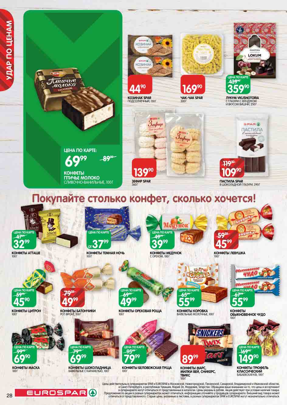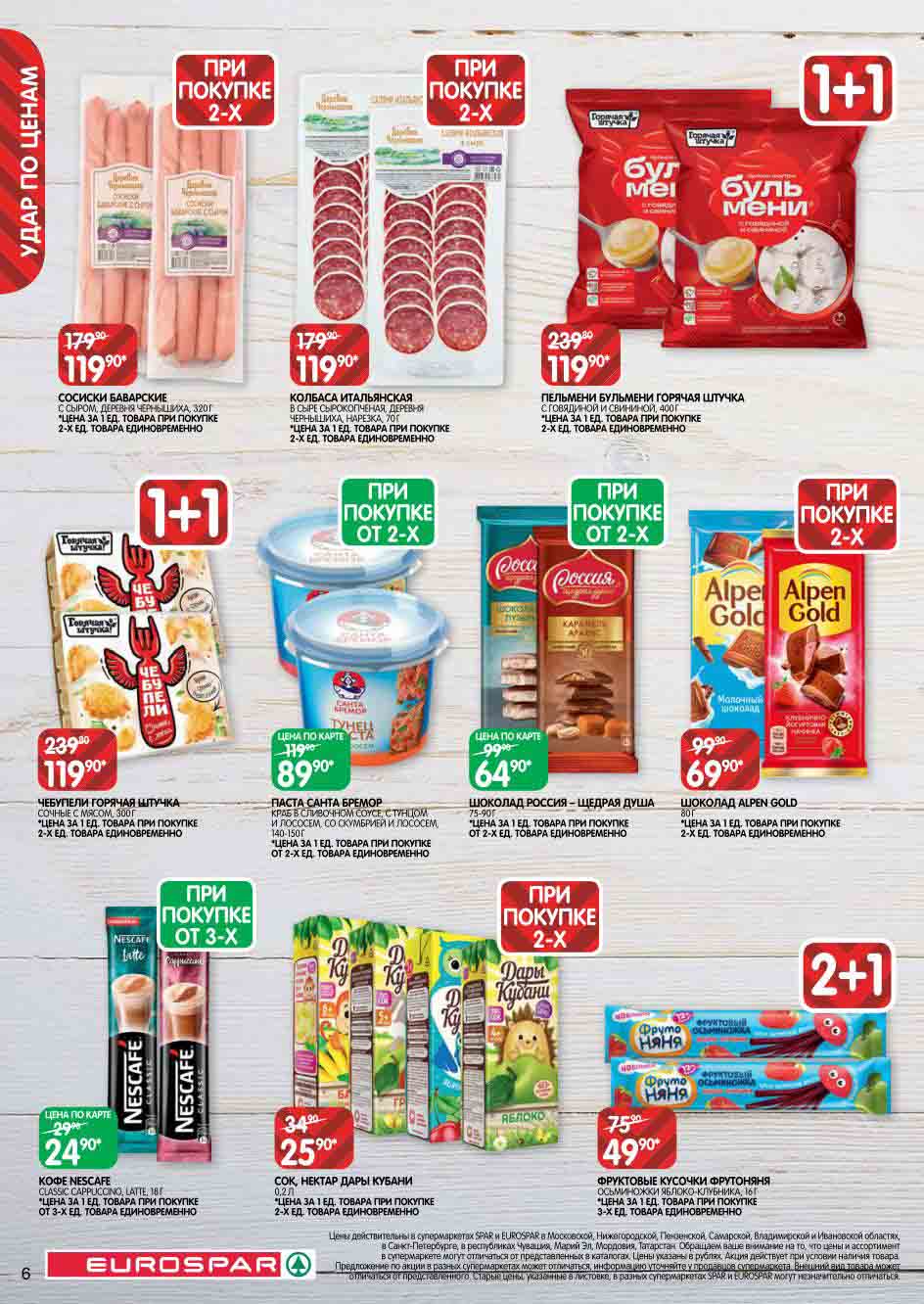 На страницах каталога ЕВРОСПАР вы найдете все свои любимые товары, которые сейчас предлагаются в супермаркете. Не пропустите последние специальные предложения и сэкономьте на покупках. Цены по акции ЕвроСпар действуют в городах: Москва, Химки, Красногорск, Одинцово, Краснознаменск, Кубинка, Климовск, Жуковский, Видное и других населенных пунктах Московского региона.