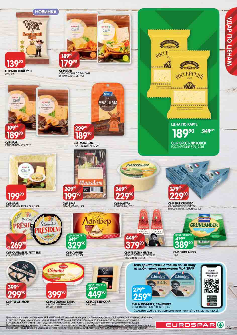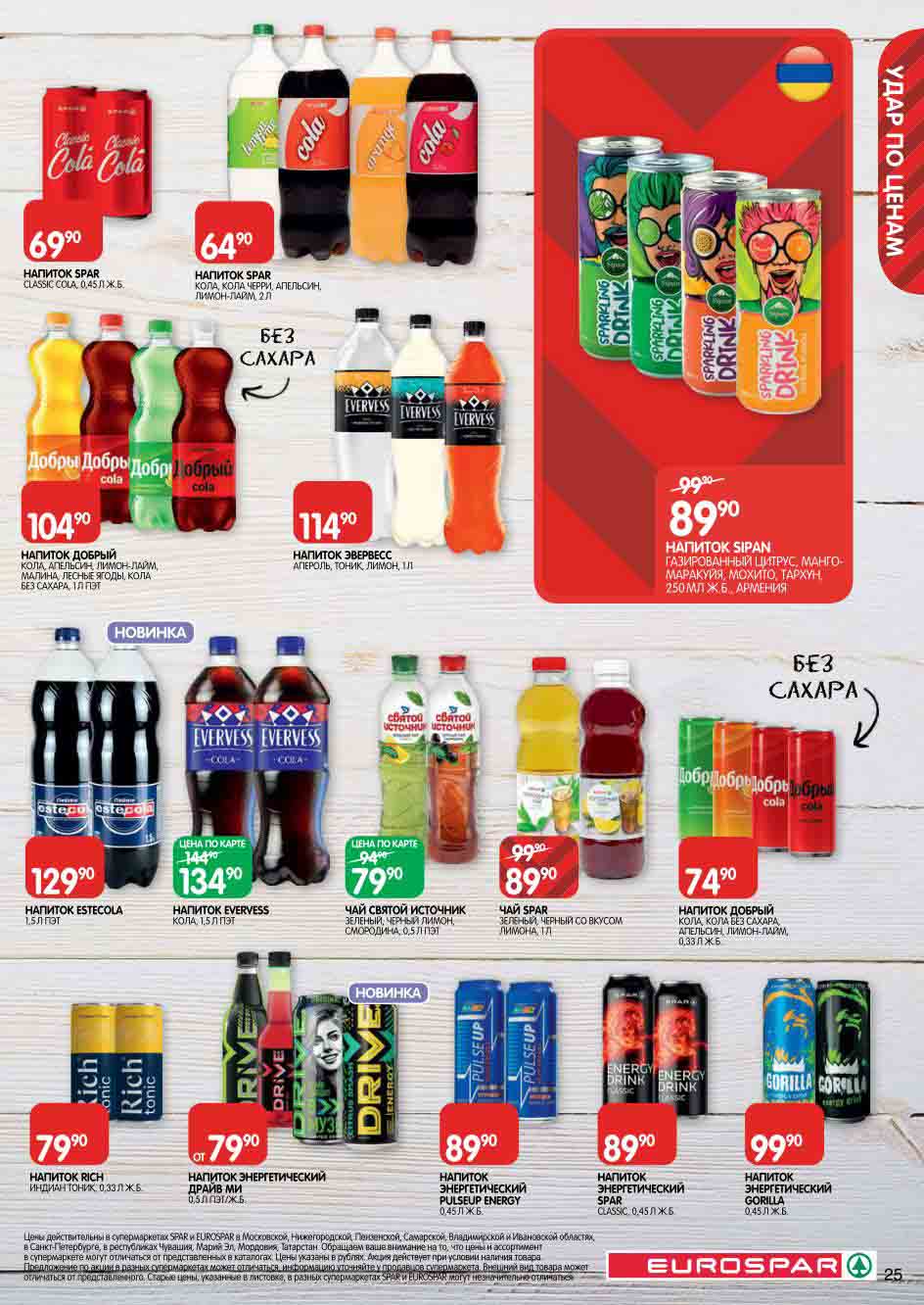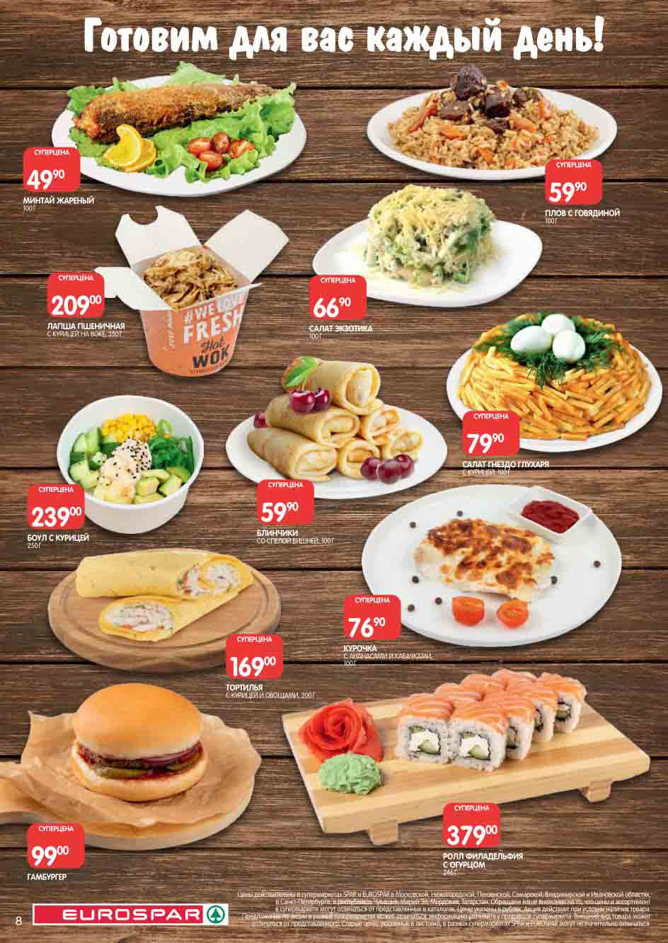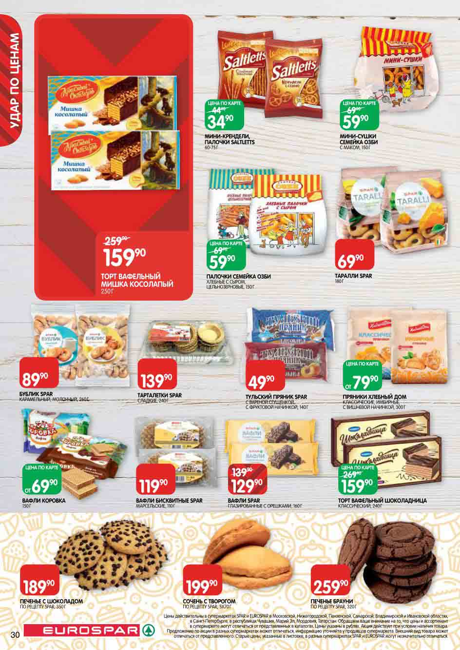 На страницах каталога ЕВРОСПАР вы найдете все свои любимые товары, которые сейчас предлагаются в супермаркете. Не пропустите последние специальные предложения и сэкономьте на покупках. Цены по акции ЕвроСпар действуют в городах: Москва, Химки, Красногорск, Одинцово, Краснознаменск, Кубинка, Климовск, Жуковский, Видное и других населенных пунктах Московского региона.