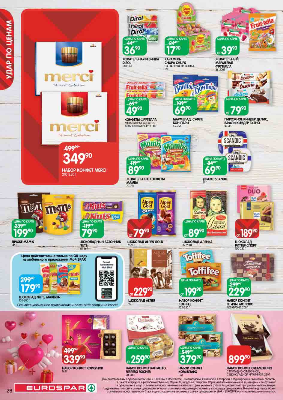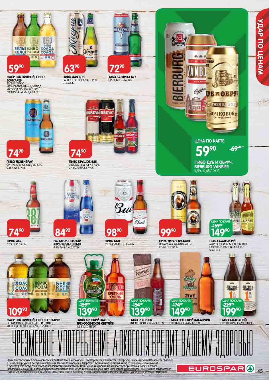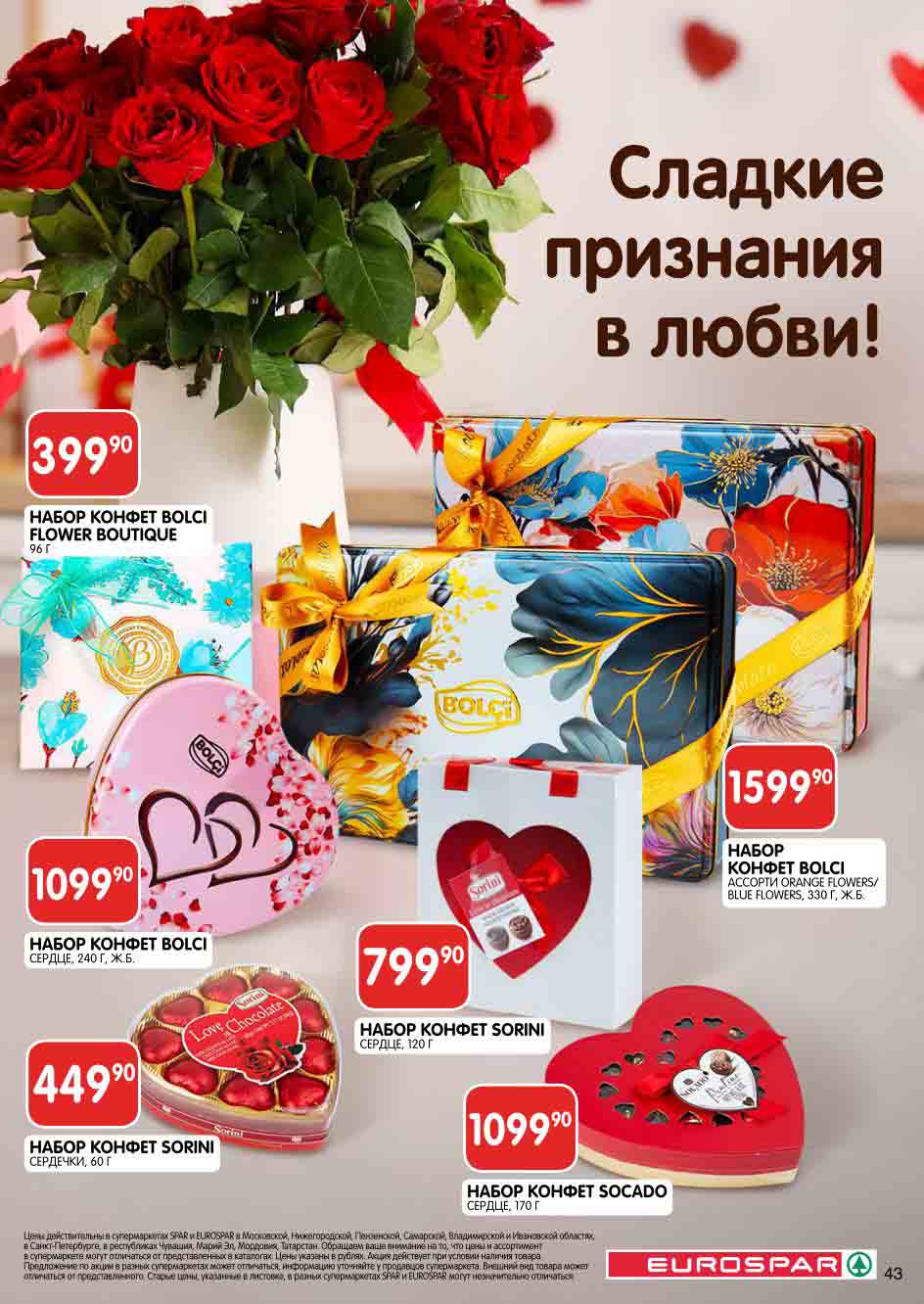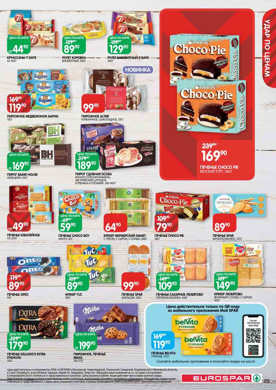 На страницах каталога ЕВРОСПАР вы найдете все свои любимые товары, которые сейчас предлагаются в супермаркете. Не пропустите последние специальные предложения и сэкономьте на покупках. Цены по акции ЕвроСпар действуют в городах: Москва, Химки, Красногорск, Одинцово, Краснознаменск, Кубинка, Климовск, Жуковский, Видное и других населенных пунктах Московского региона.