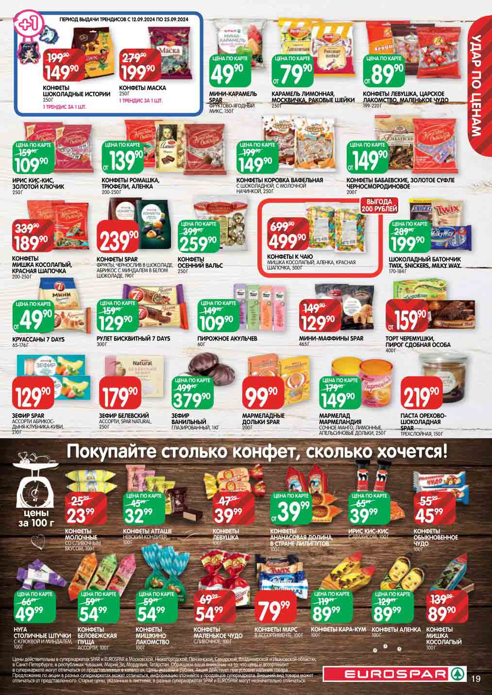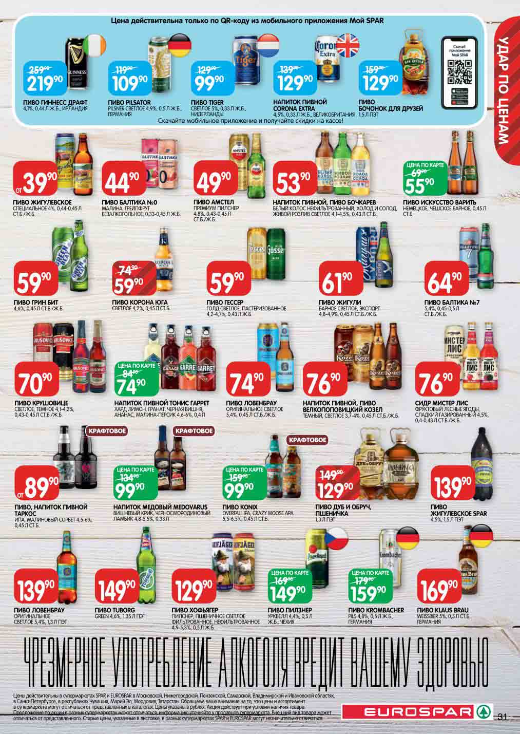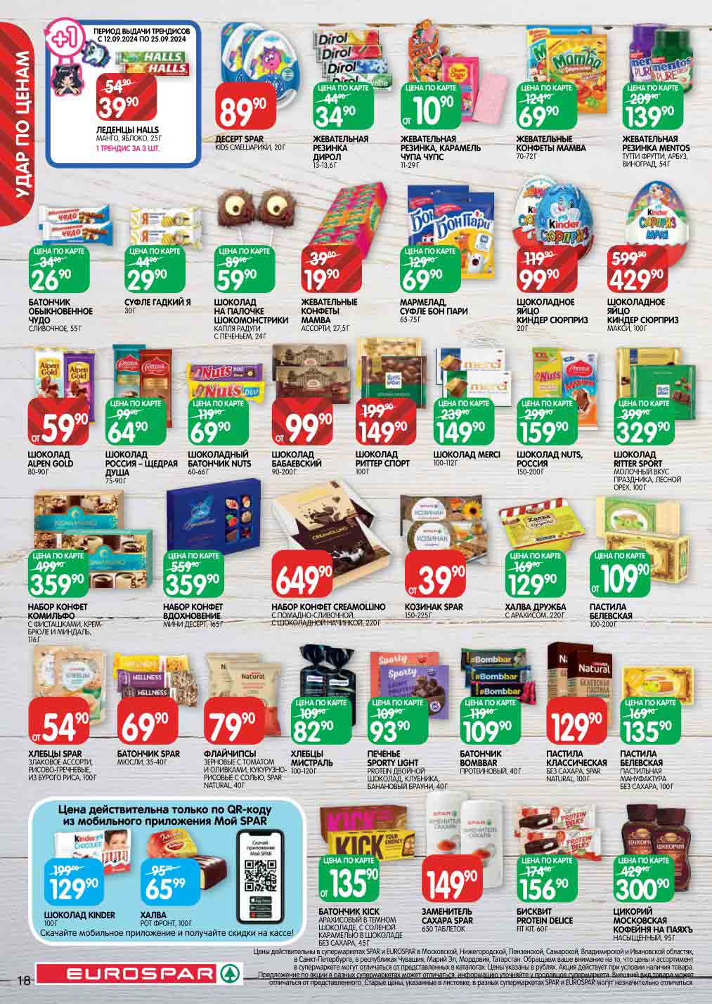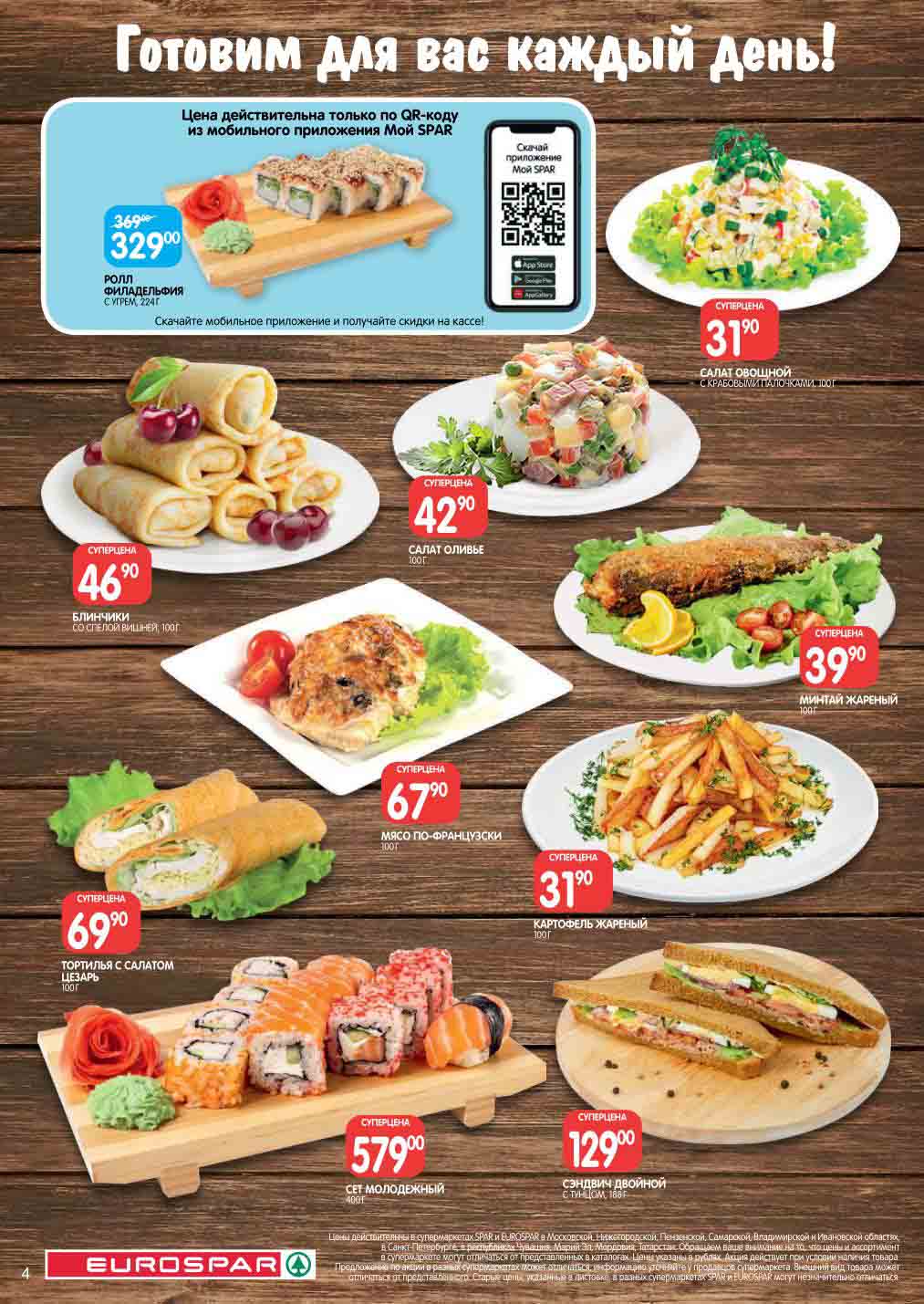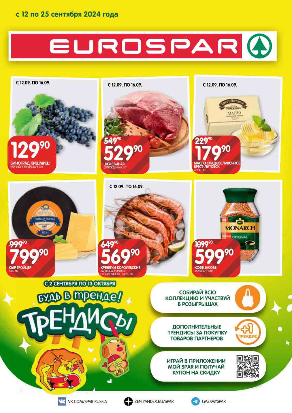 На страницах каталога ЕВРОСПАР вы найдете все свои любимые товары, которые сейчас предлагаются в супермаркете. Не пропустите последние специальные предложения и сэкономьте на покупках. Цены по акции ЕвроСпар действуют в городах: Москва, Химки, Красногорск, Одинцово, Краснознаменск, Кубинка, Климовск, Жуковский, Видное и других населенных пунктах Московского региона.