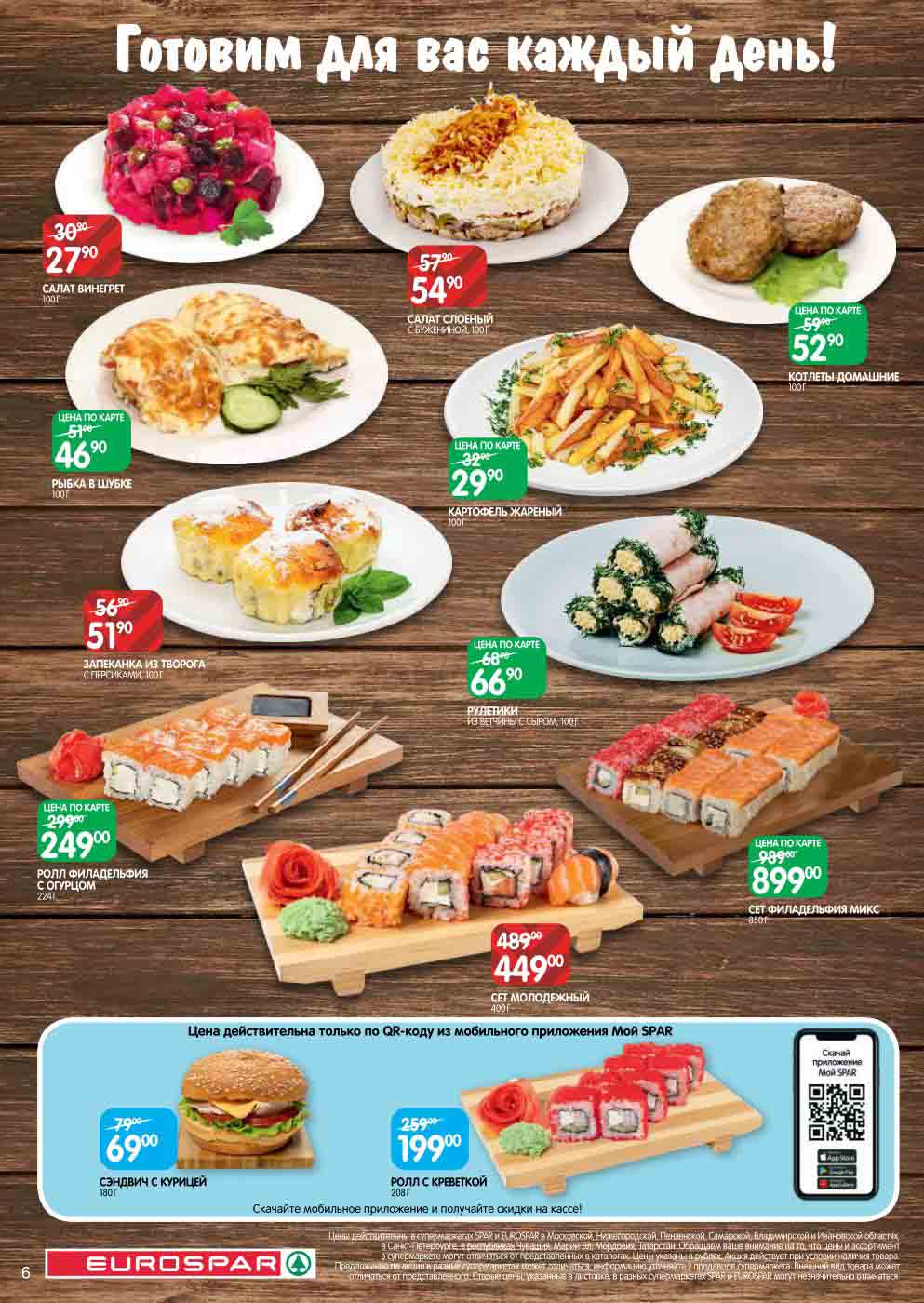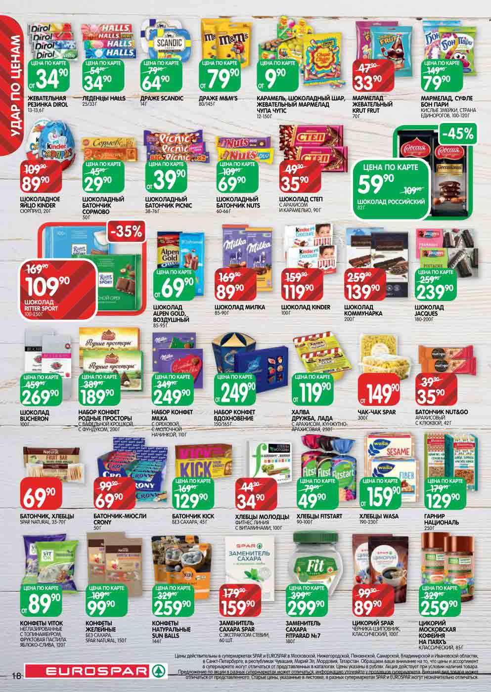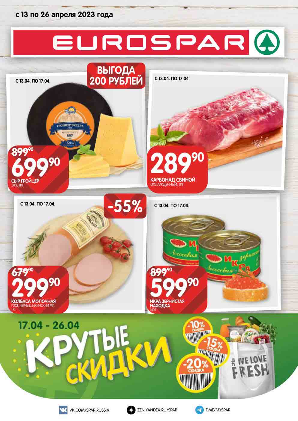 На страницах каталога ЕВРОСПАР вы найдете все свои любимые товары, которые сейчас предлагаются в супермаркете. Не пропустите последние специальные предложения и сэкономьте на покупках. Цены по акции ЕвроСпар действуют в городах: Москва, Химки, Красногорск, Одинцово, Краснознаменск, Кубинка, Климовск, Жуковский, Видное и других населенных пунктах Московского региона.