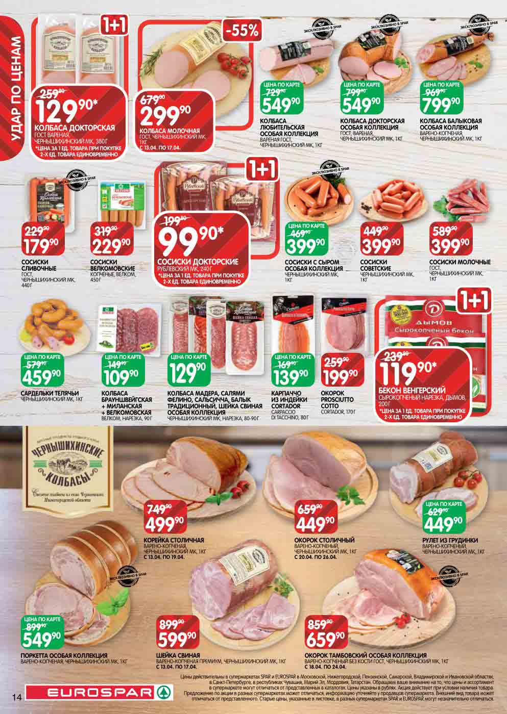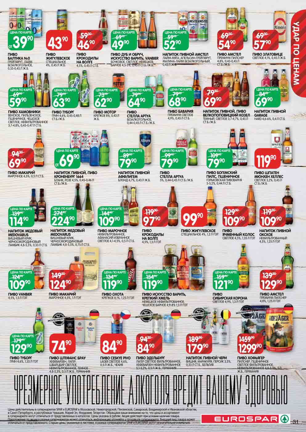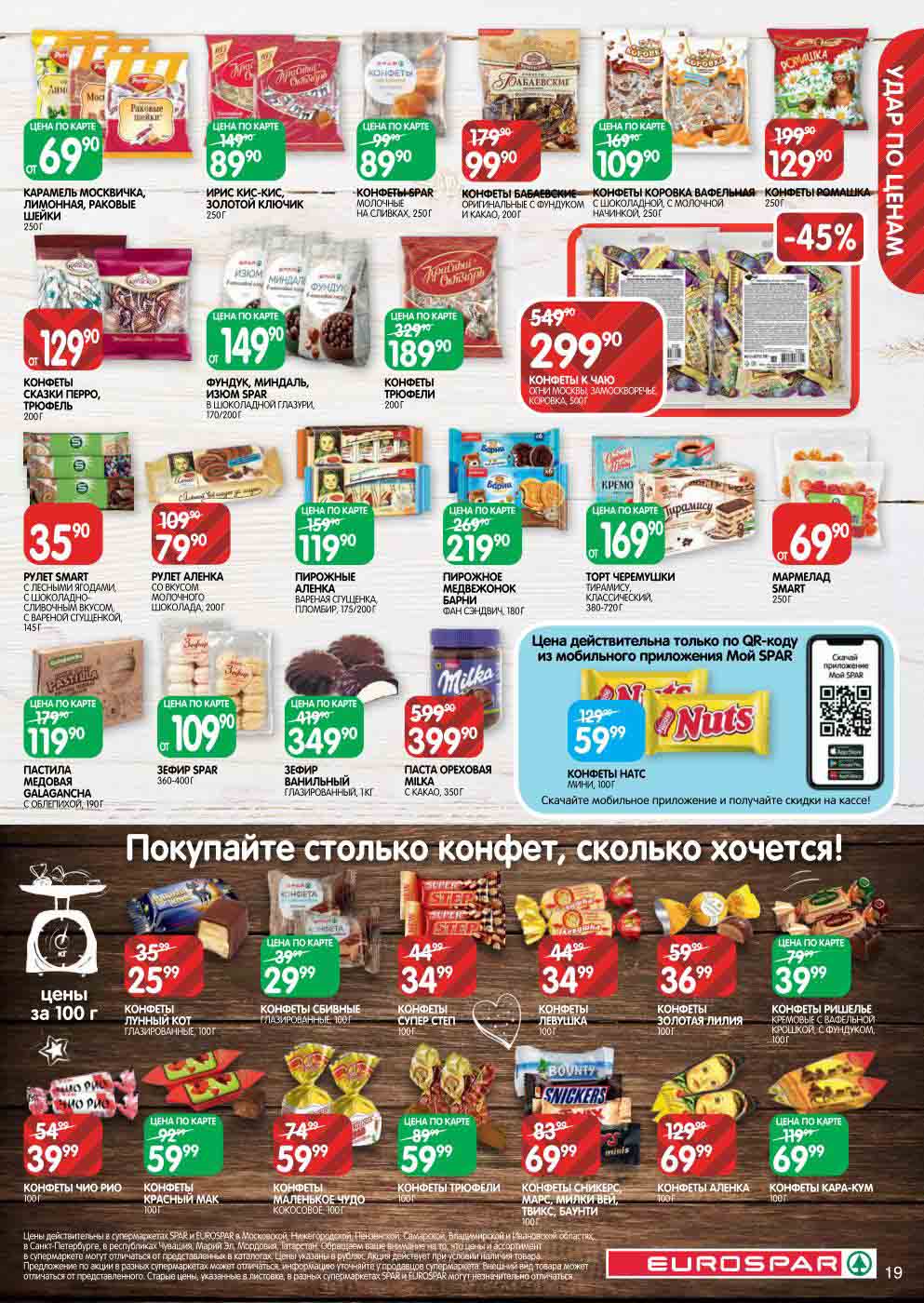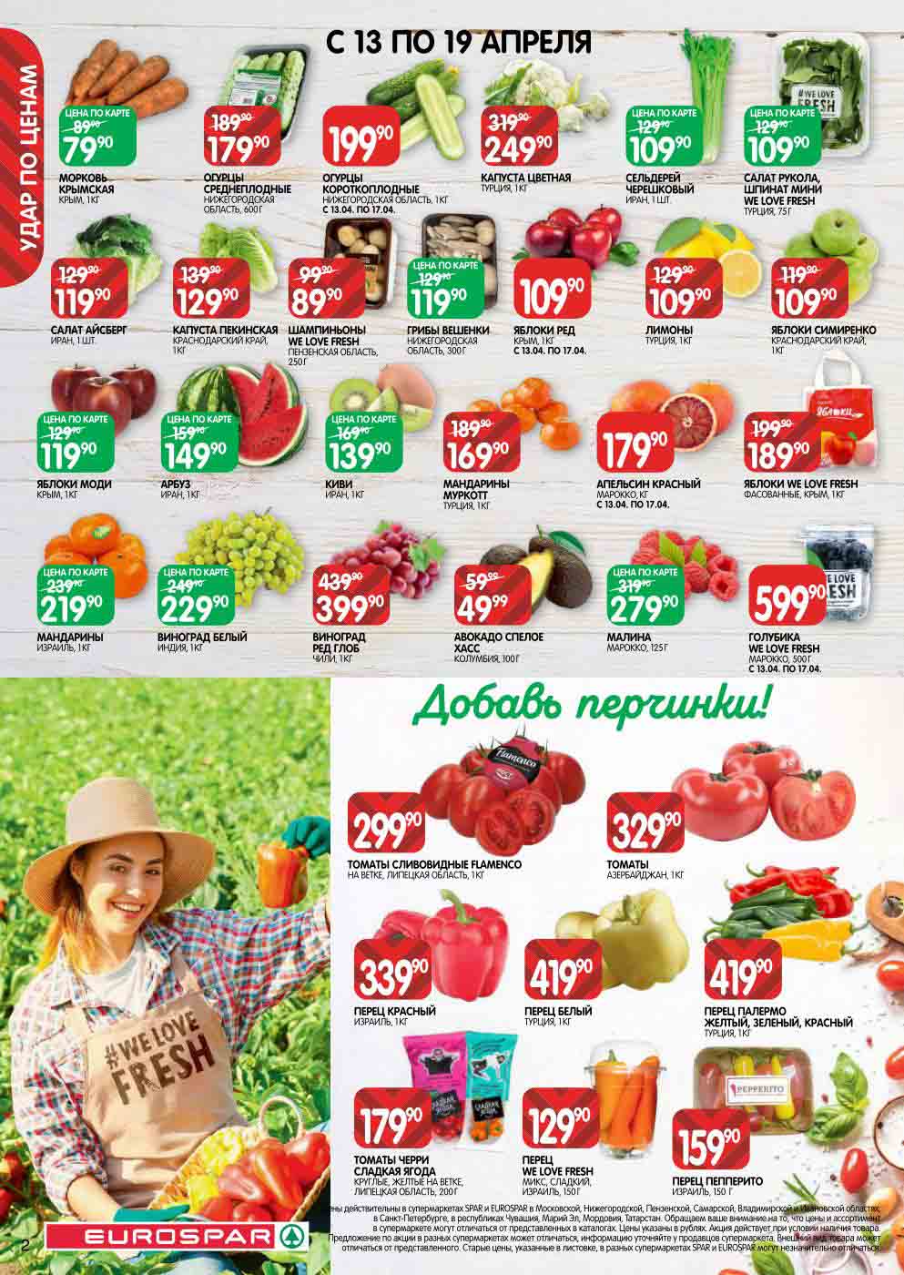 На страницах каталога ЕВРОСПАР вы найдете все свои любимые товары, которые сейчас предлагаются в супермаркете. Не пропустите последние специальные предложения и сэкономьте на покупках. Цены по акции ЕвроСпар действуют в городах: Москва, Химки, Красногорск, Одинцово, Краснознаменск, Кубинка, Климовск, Жуковский, Видное и других населенных пунктах Московского региона.
