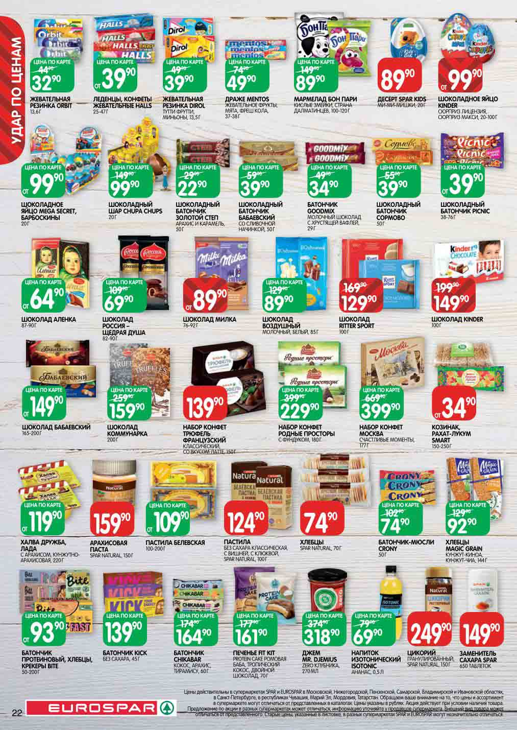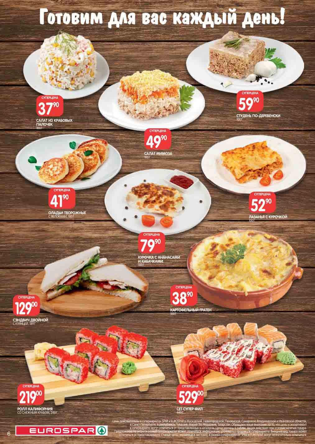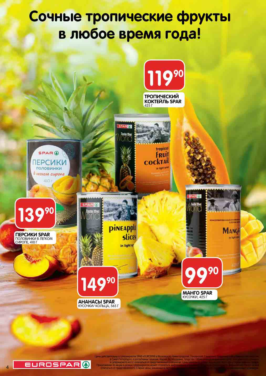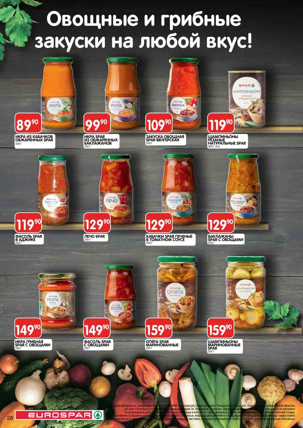 На страницах каталога ЕВРОСПАР вы найдете все свои любимые товары, которые сейчас предлагаются в супермаркете. Не пропустите последние специальные предложения и сэкономьте на покупках. Цены по акции ЕвроСпар действуют в городах: Москва, Химки, Красногорск, Одинцово, Краснознаменск, Кубинка, Климовск, Жуковский, Видное и других населенных пунктах Московского региона.