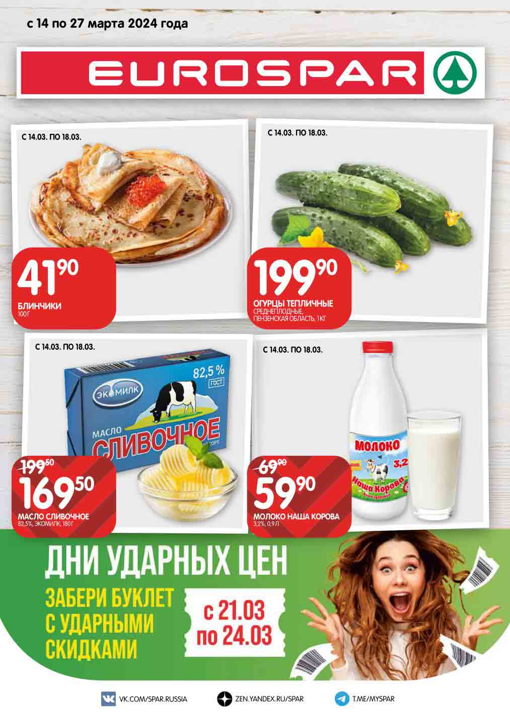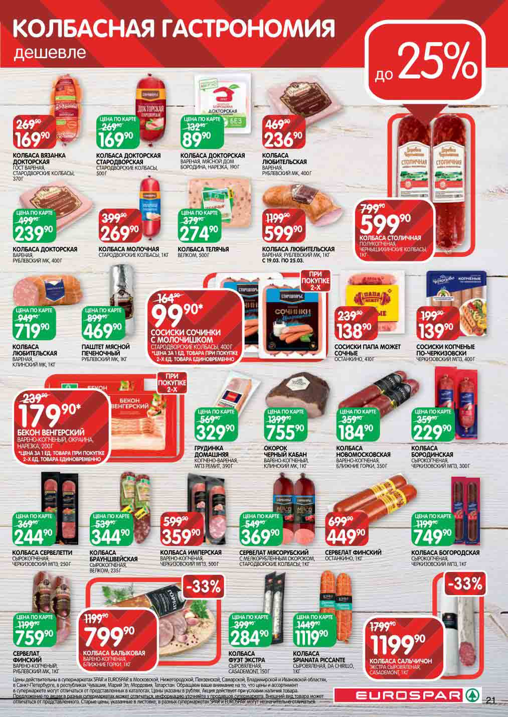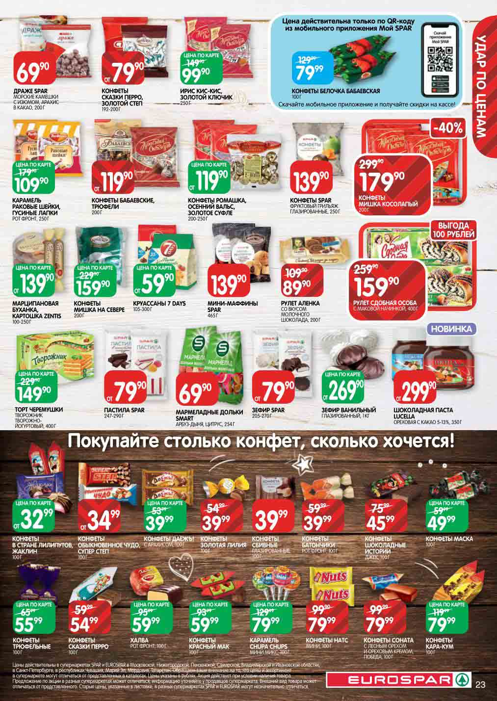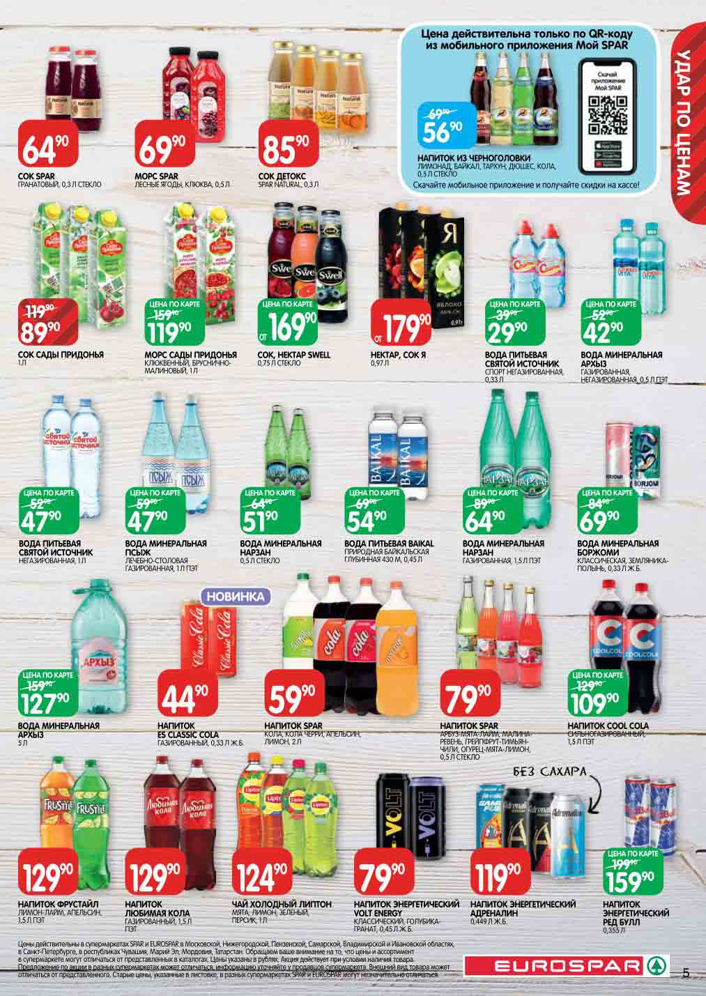 На страницах каталога ЕВРОСПАР вы найдете все свои любимые товары, которые сейчас предлагаются в супермаркете. Не пропустите последние специальные предложения и сэкономьте на покупках. Цены по акции ЕвроСпар действуют в городах: Москва, Химки, Красногорск, Одинцово, Краснознаменск, Кубинка, Климовск, Жуковский, Видное и других населенных пунктах Московского региона.