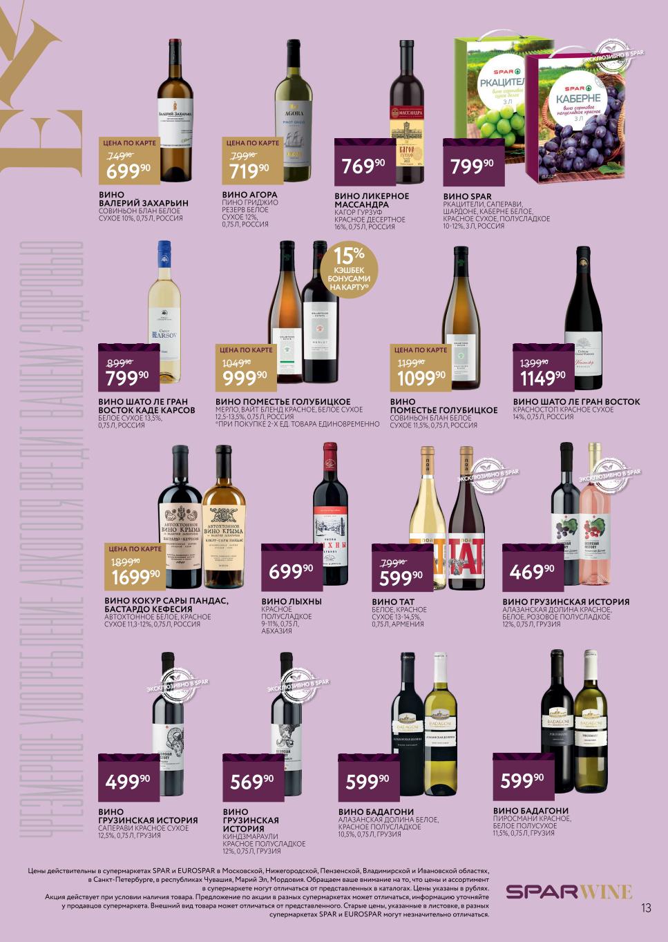 Подробную информацию об правилах, наличии товаров, адресах и скидках узнавайте в магазинах или по тел. 8-800-500-13-29 и на сайте: myspar.ru