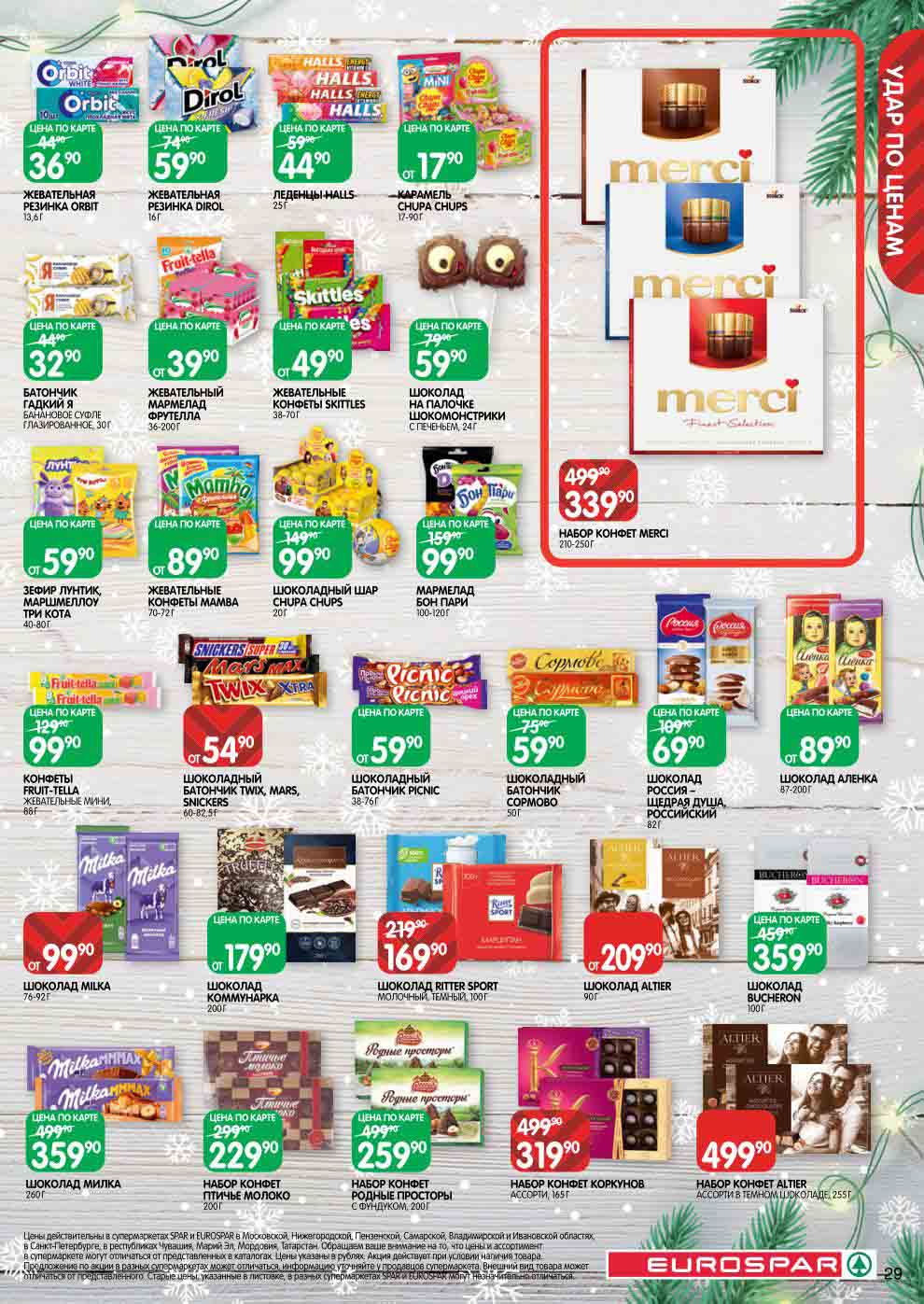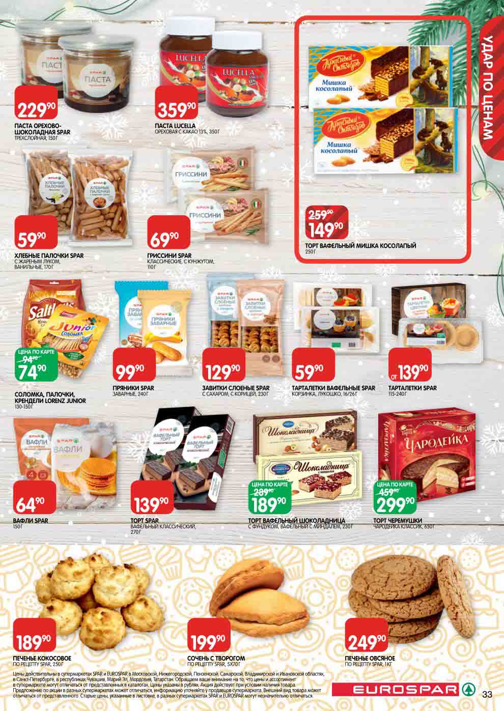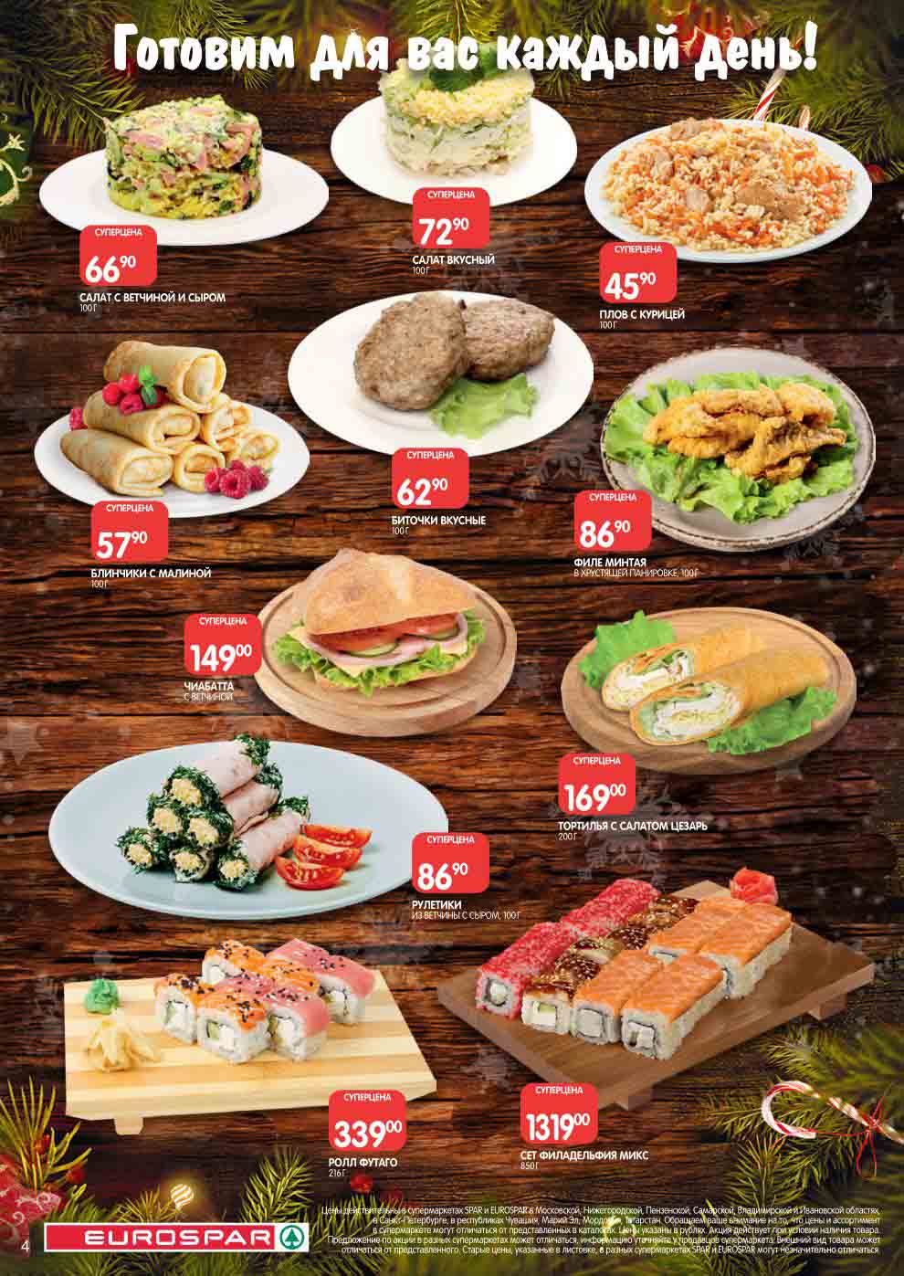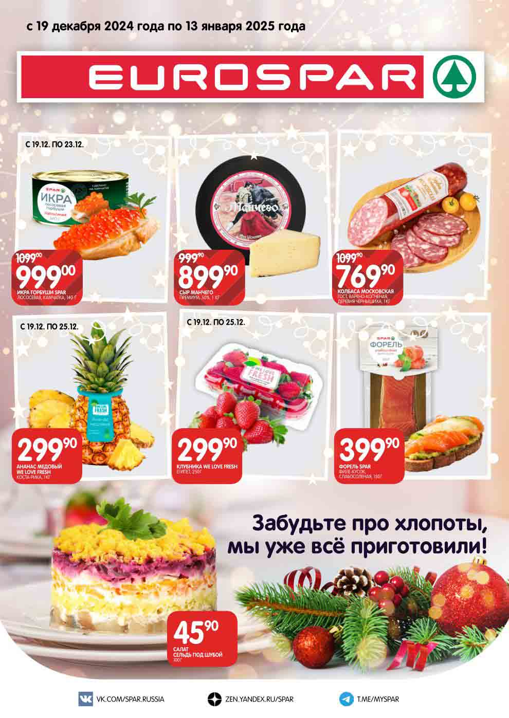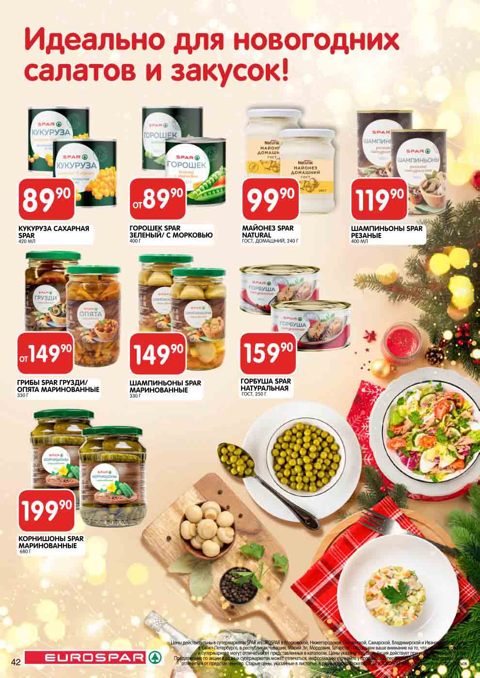 На страницах каталога ЕВРОСПАР вы найдете все свои любимые товары, которые сейчас предлагаются в супермаркете. Не пропустите последние специальные предложения и сэкономьте на покупках. Цены по акции ЕвроСпар действуют в городах: Москва, Химки, Красногорск, Одинцово, Краснознаменск, Кубинка, Климовск, Жуковский, Видное и других населенных пунктах Московского региона.
