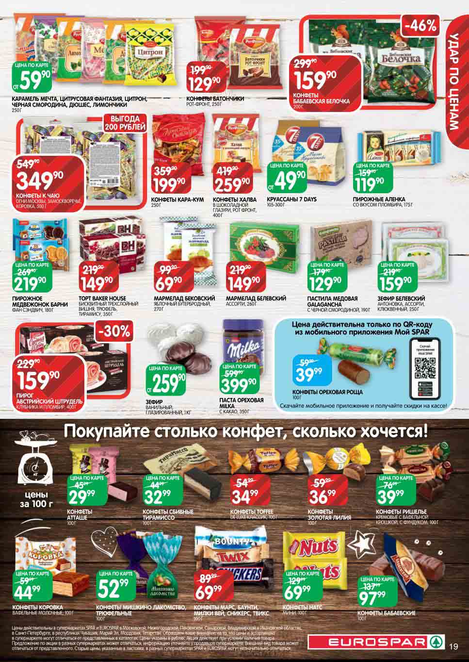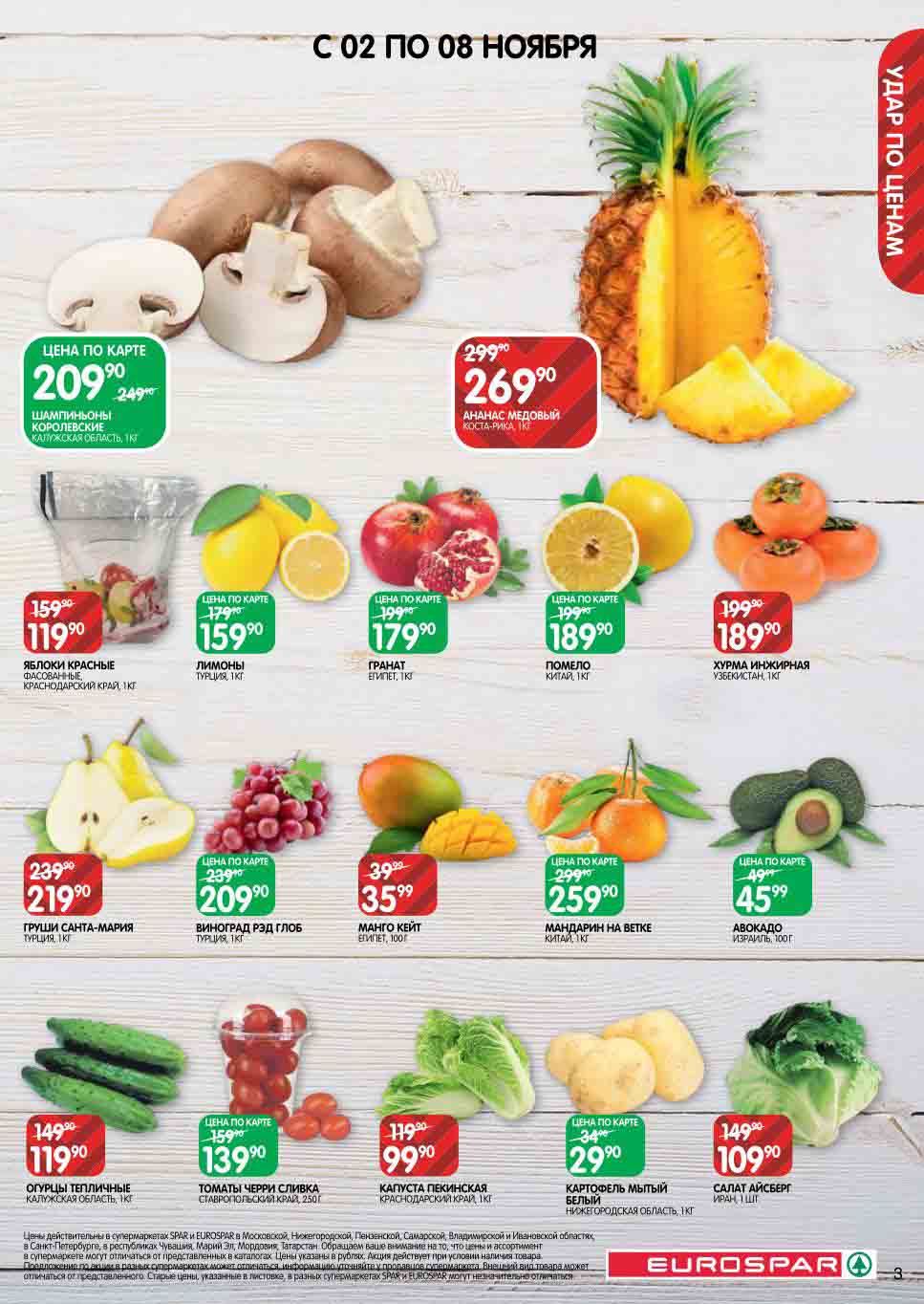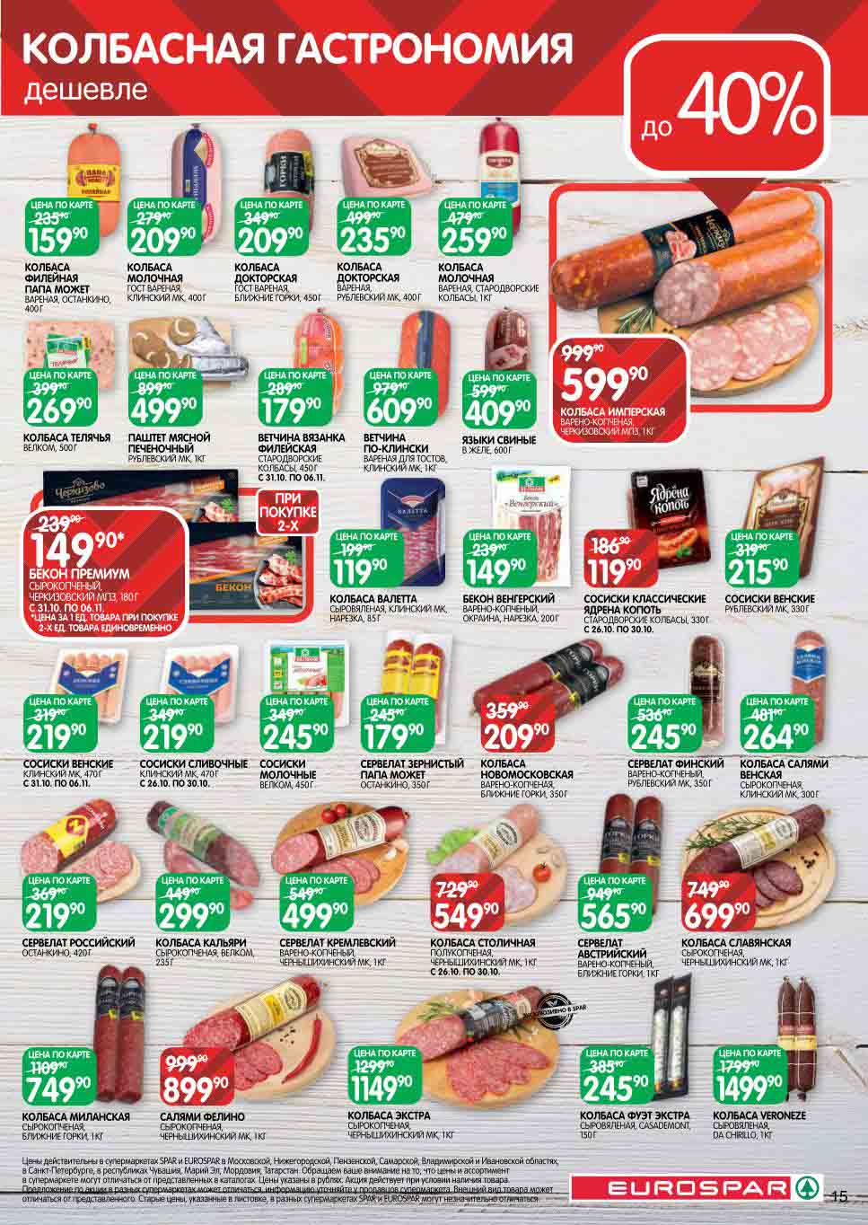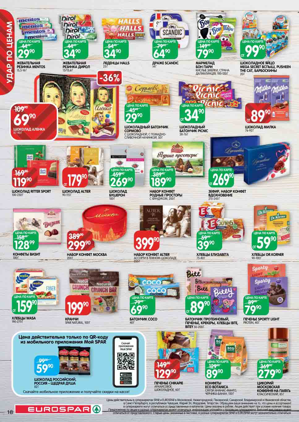 На страницах каталога ЕВРОСПАР вы найдете все свои любимые товары, которые сейчас предлагаются в супермаркете. Не пропустите последние специальные предложения и сэкономьте на покупках. Цены по акции ЕвроСпар действуют в городах: Москва, Химки, Красногорск, Одинцово, Краснознаменск, Кубинка, Климовск, Жуковский, Видное и других населенных пунктах Московского региона.