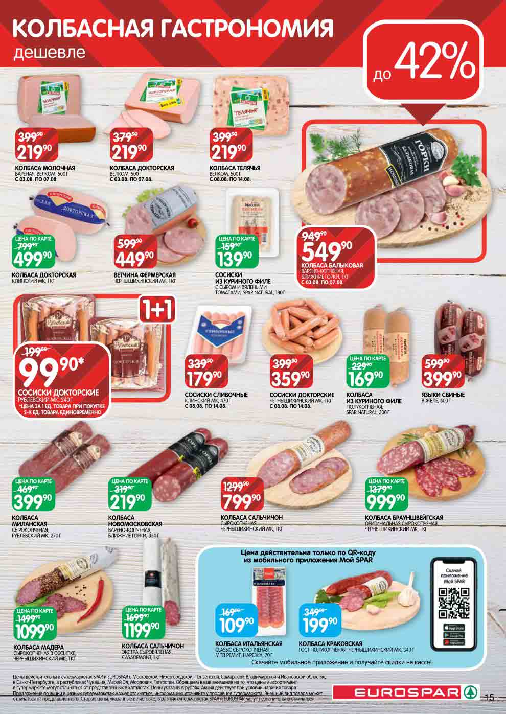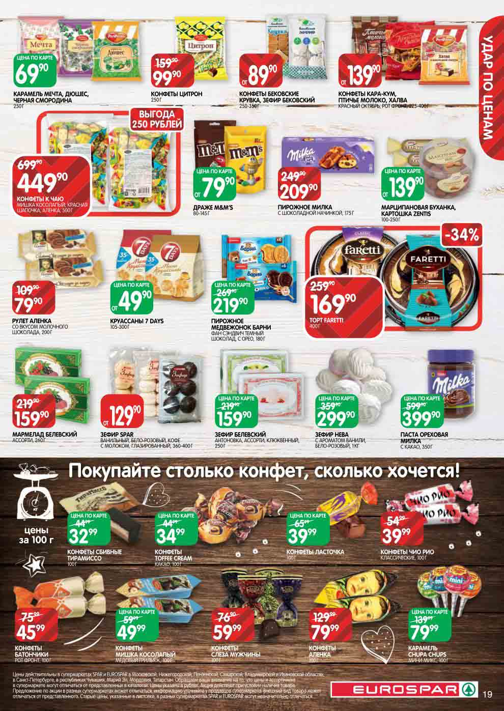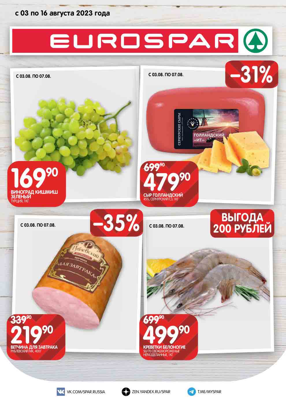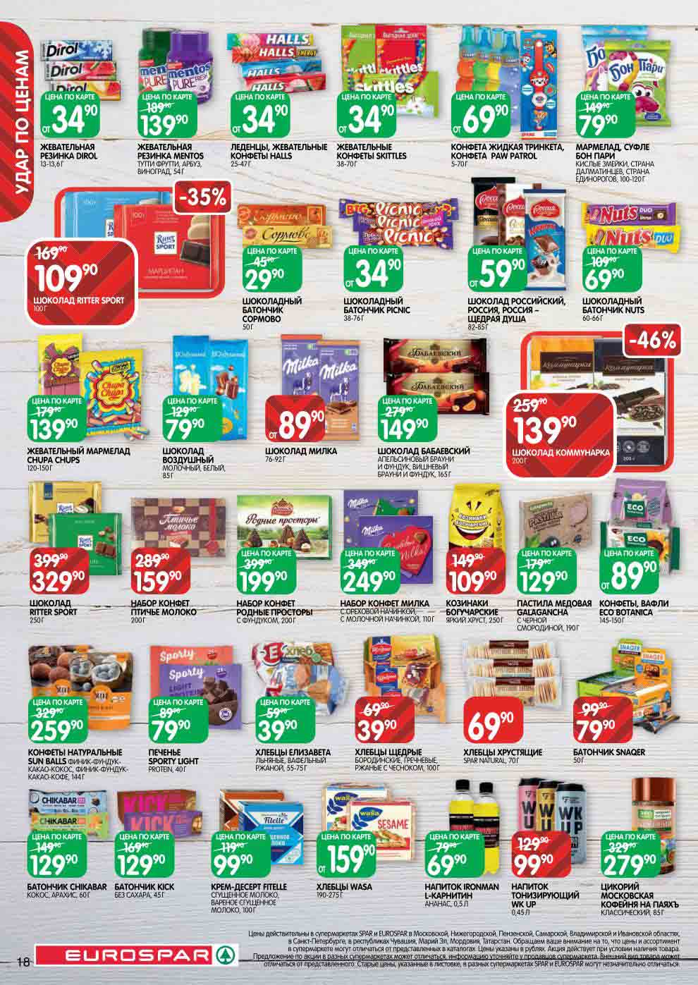 На страницах каталога ЕВРОСПАР вы найдете все свои любимые товары, которые сейчас предлагаются в супермаркете. Не пропустите последние специальные предложения и сэкономьте на покупках. Цены по акции ЕвроСпар действуют в городах: Москва, Химки, Красногорск, Одинцово, Краснознаменск, Кубинка, Климовск, Жуковский, Видное и других населенных пунктах Московского региона.