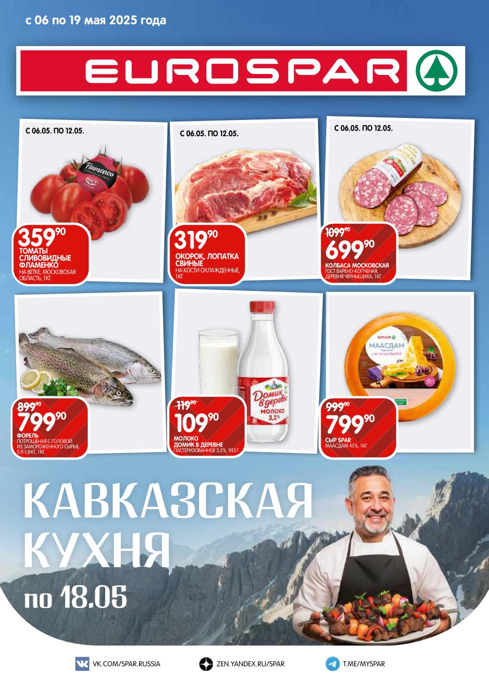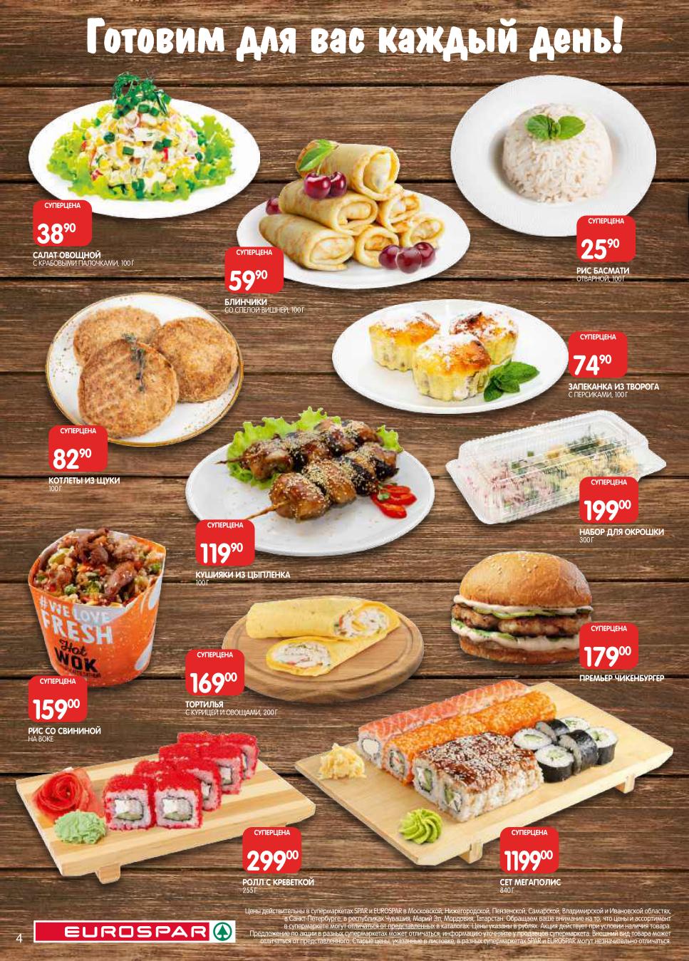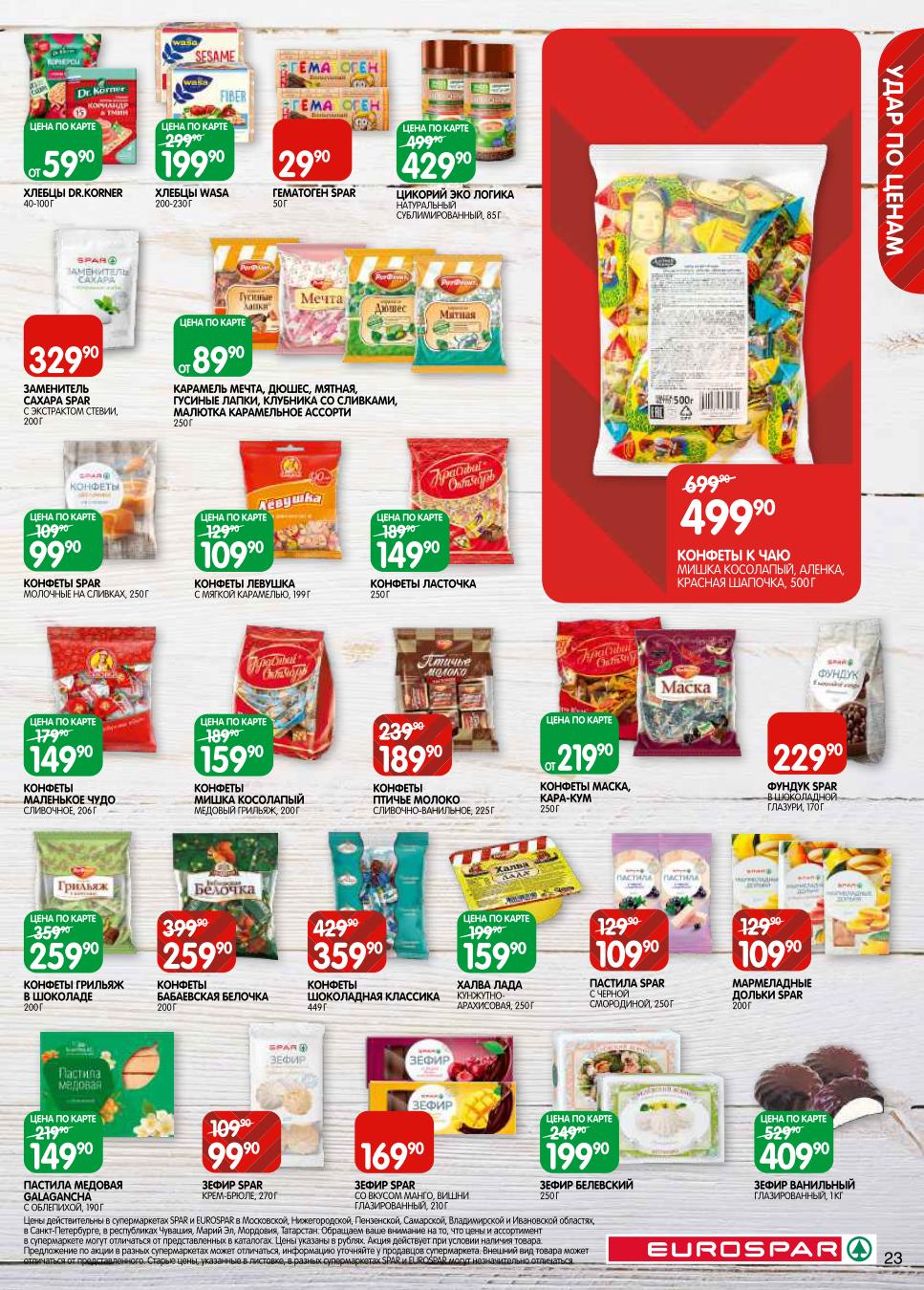 На страницах каталога ЕВРОСПАР вы найдете все свои любимые товары, которые сейчас предлагаются в супермаркете. Не пропустите последние специальные предложения и сэкономьте на покупках. Цены по акции ЕвроСпар действуют в городах: Москва, Химки, Красногорск, Одинцово, Краснознаменск, Кубинка, Климовск, Жуковский, Видное и других населенных пунктах Московского региона.