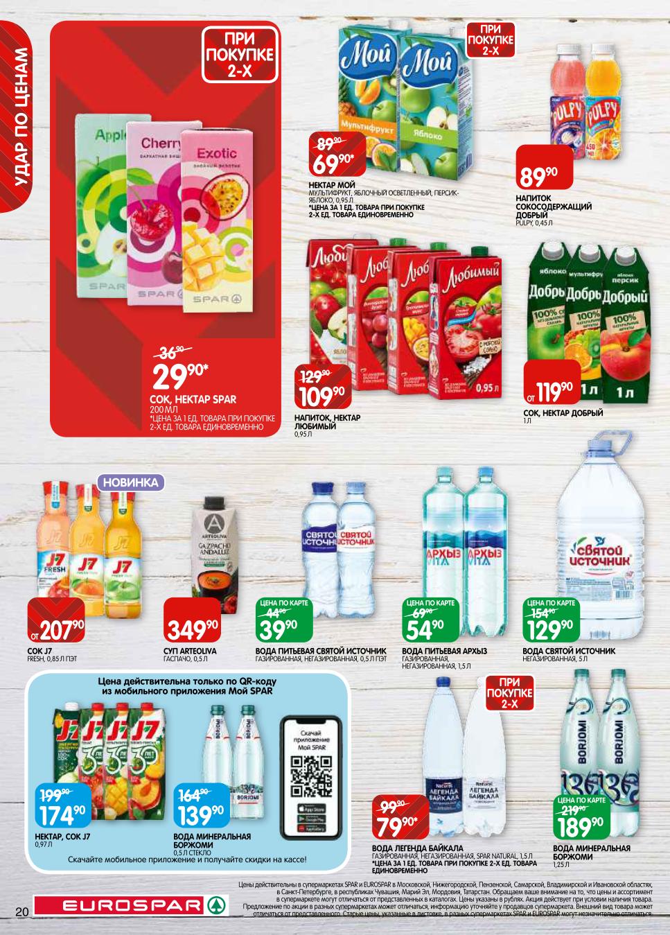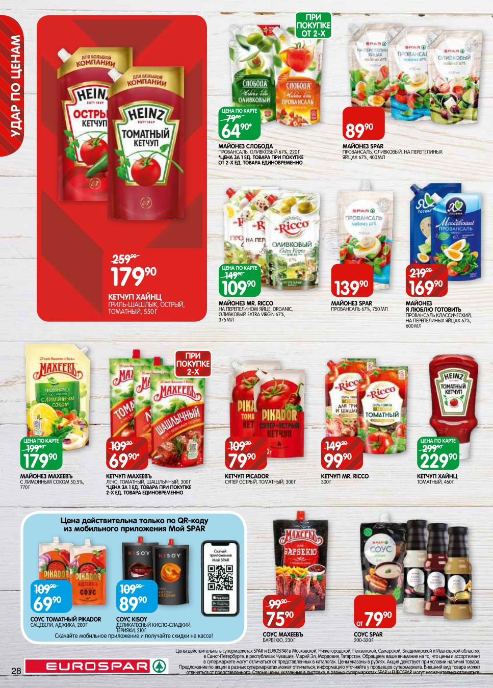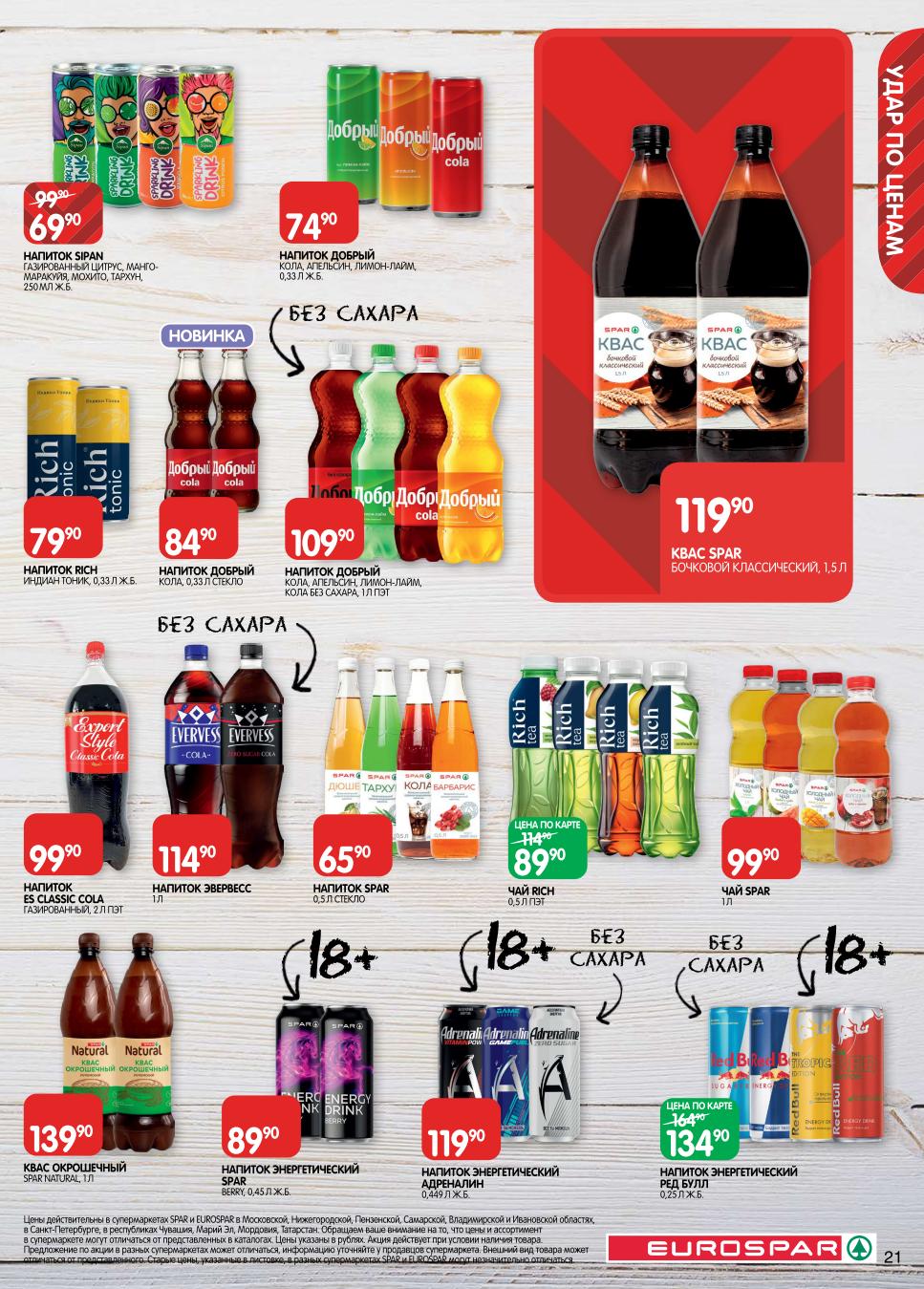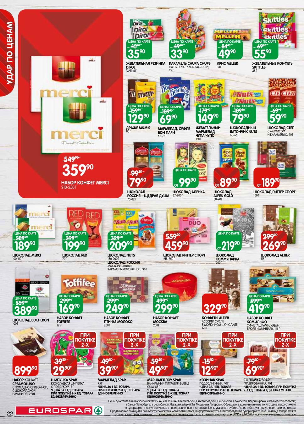 На страницах каталога ЕВРОСПАР вы найдете все свои любимые товары, которые сейчас предлагаются в супермаркете. Не пропустите последние специальные предложения и сэкономьте на покупках. Цены по акции ЕвроСпар действуют в городах: Москва, Химки, Красногорск, Одинцово, Краснознаменск, Кубинка, Климовск, Жуковский, Видное и других населенных пунктах Московского региона.