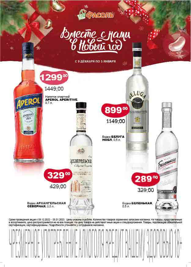 Фасоль магазин акции (Алкоголь) с 9 декабря — 5 января 2023
