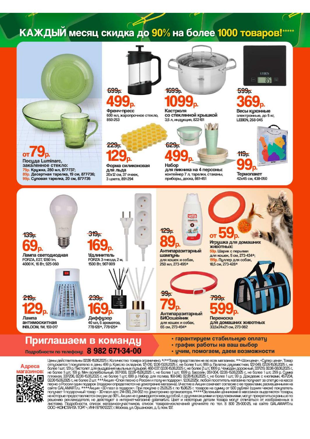 Подробную информацию об правилах, наличии товаров, адресах и скидках узнавайте в магазинах или по тел.: 8-800-25-000 25 и на сайте: galamart.ru