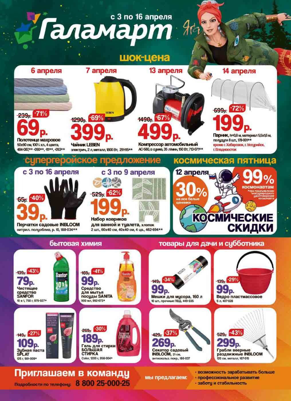 Подробную информацию об правилах, наличии товаров, адресах и скидках узнавайте в магазинах или по тел.: 8-800-25-000 25 и на сайте: galamart.ru