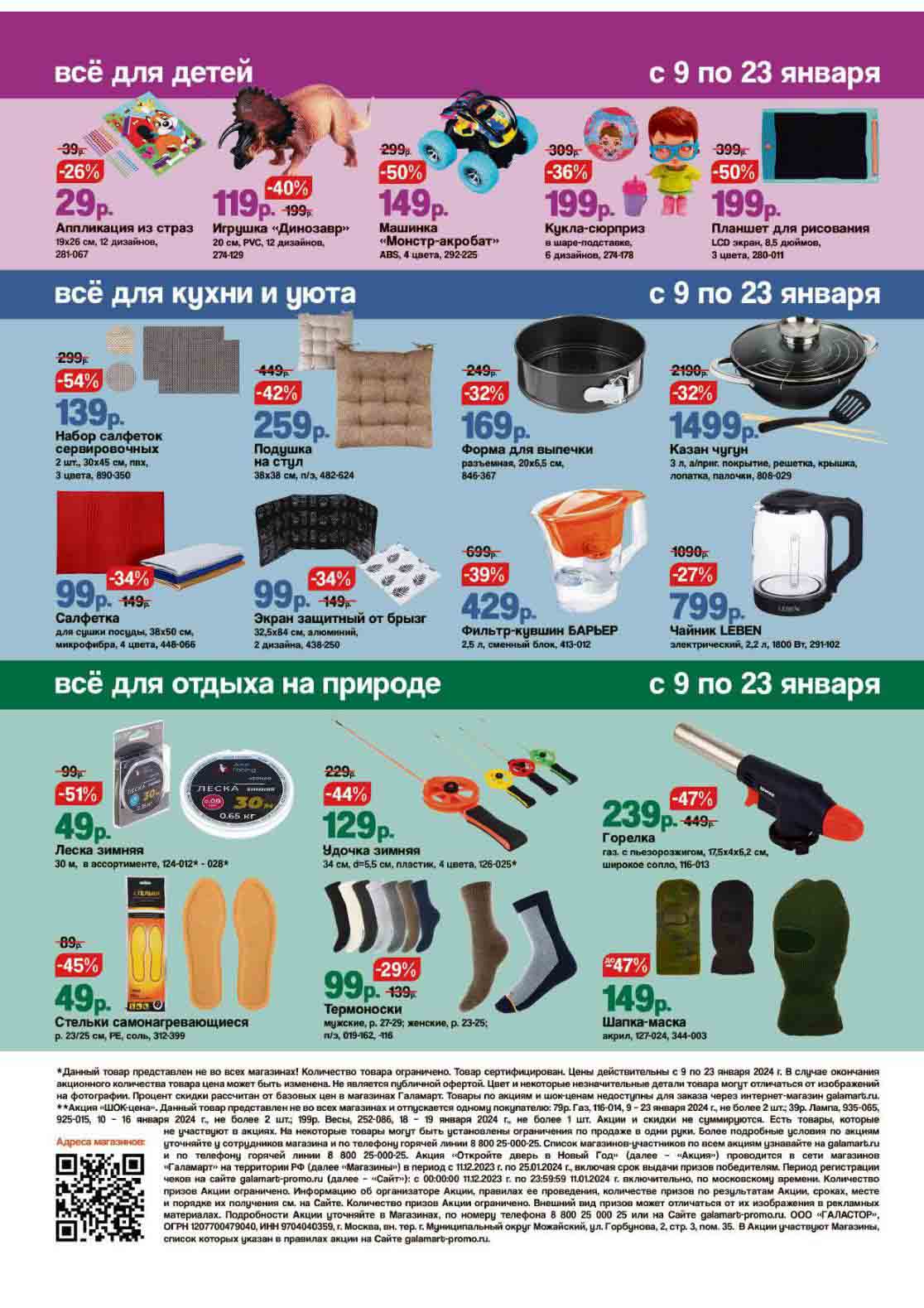 Подробную информацию об правилах, наличии товаров, адресах и скидках узнавайте в магазинах или по тел.: 8-800-25-000 25 и на сайте: galamart.ru