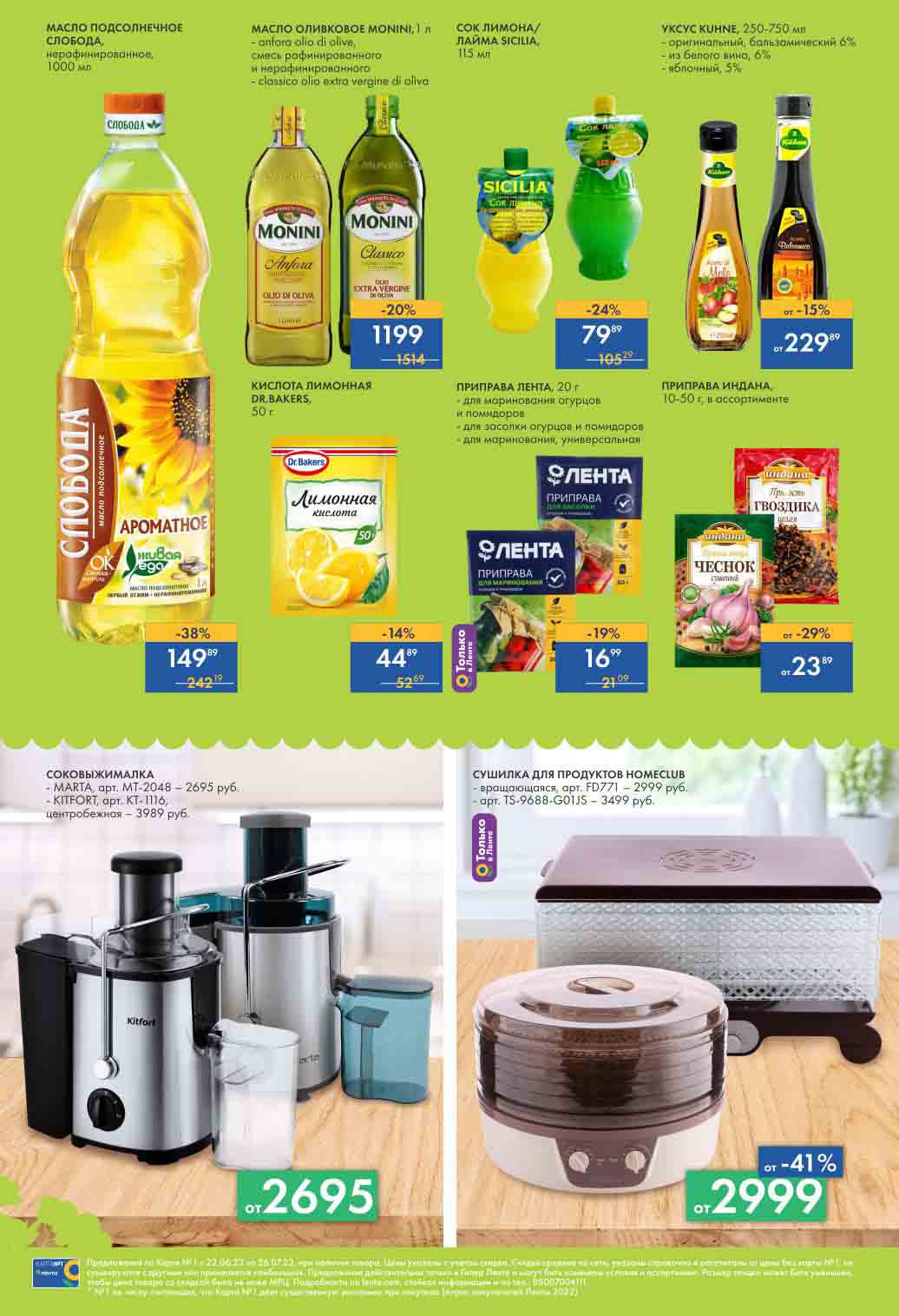 На страницах каталога ЛЕНТА вы найдете все свои любимые товары, которые сейчас предлагаются по акции. Скидки действуют в указанные сроки при покупках с Картой №1, при наличии товара Количество товара ограничено. Внешний вид товаров может отличаться от представленных. В Ленте пенсионерам скидка 10%* каждый день 9:00–13:00 (*Скидка не распространяется подарочные карты, лотерейные билеты, товары марки «365 Дней».) Выгода предоставляется на кассе при предъявлении необходимых документов и карты лояльности. Цены по акции Лента действуют в городах: Москва, Балашиха, Химки, Подольск, Королев, Мытищи, Люберцы, Электросталь, Коломна, Одинцово, Железнодорожный, Серпухов, Орехово-Зуево, Красногорск, Щелково, Сергиев Посад, Пушкино, Жуковский, Ногинск, Раменское и многих других населенных пунктах Московского региона.