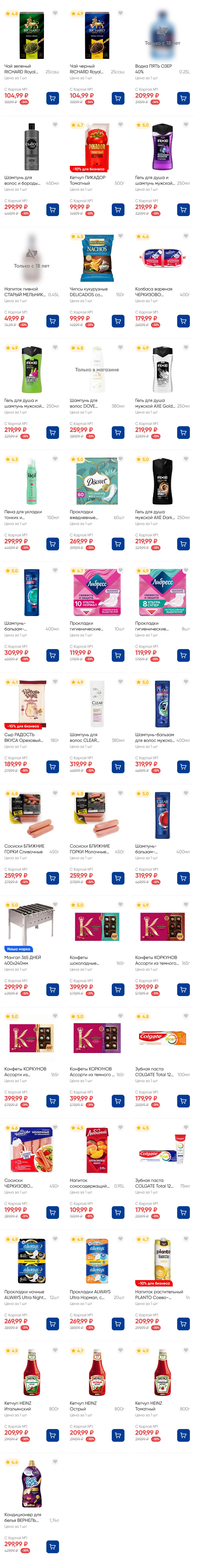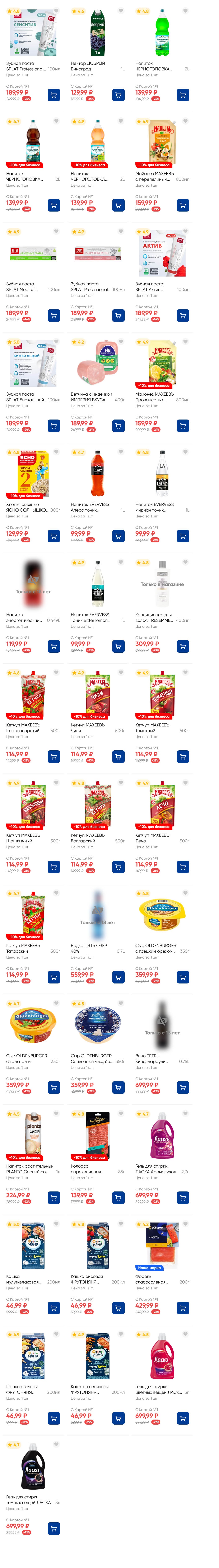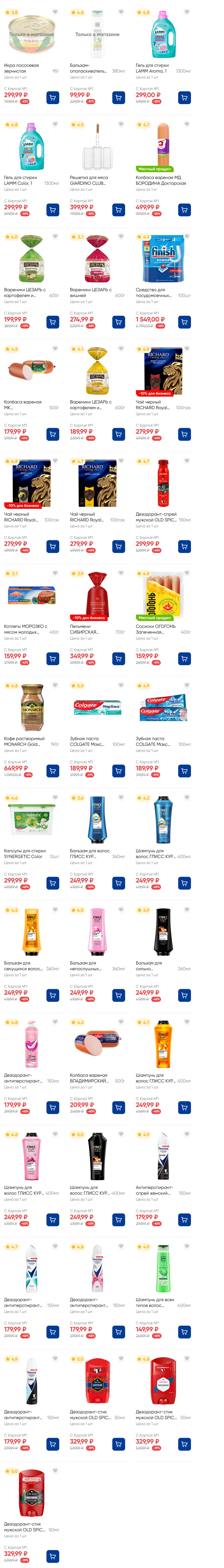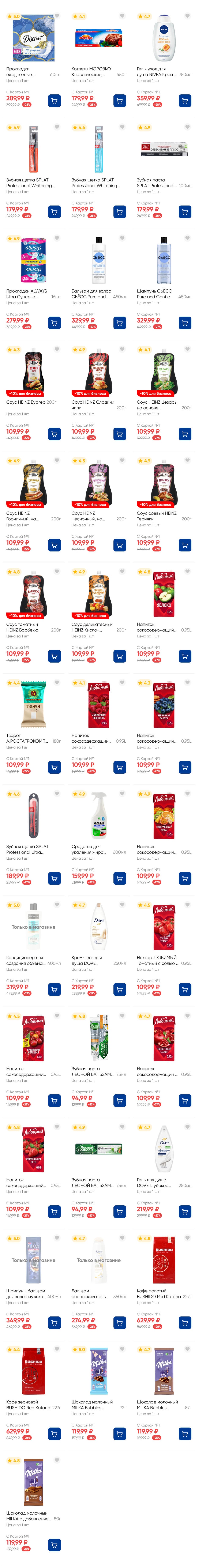На страницах каталога ЛЕНТА вы найдете все свои любимые товары, которые сейчас предлагаются по акции. Скидки действуют в указанные сроки при покупках с Картой №1, при наличии товара Количество товара ограничено. Внешний вид товаров может отличаться от представленных. В Ленте пенсионерам скидка 10%* каждый день 9:00–13:00 (*Скидка не распространяется подарочные карты, лотерейные билеты, товары марки «365 Дней».) Выгода предоставляется на кассе при предъявлении необходимых документов и карты лояльности. Цены по акции Лента действуют в городах: Москва, Балашиха, Химки, Подольск, Королев, Мытищи, Люберцы, Электросталь, Коломна, Одинцово, Железнодорожный, Серпухов, Орехово-Зуево, Красногорск, Щелково, Сергиев Посад, Пушкино, Жуковский, Ногинск, Раменское и многих других населенных пунктах Московского региона.
