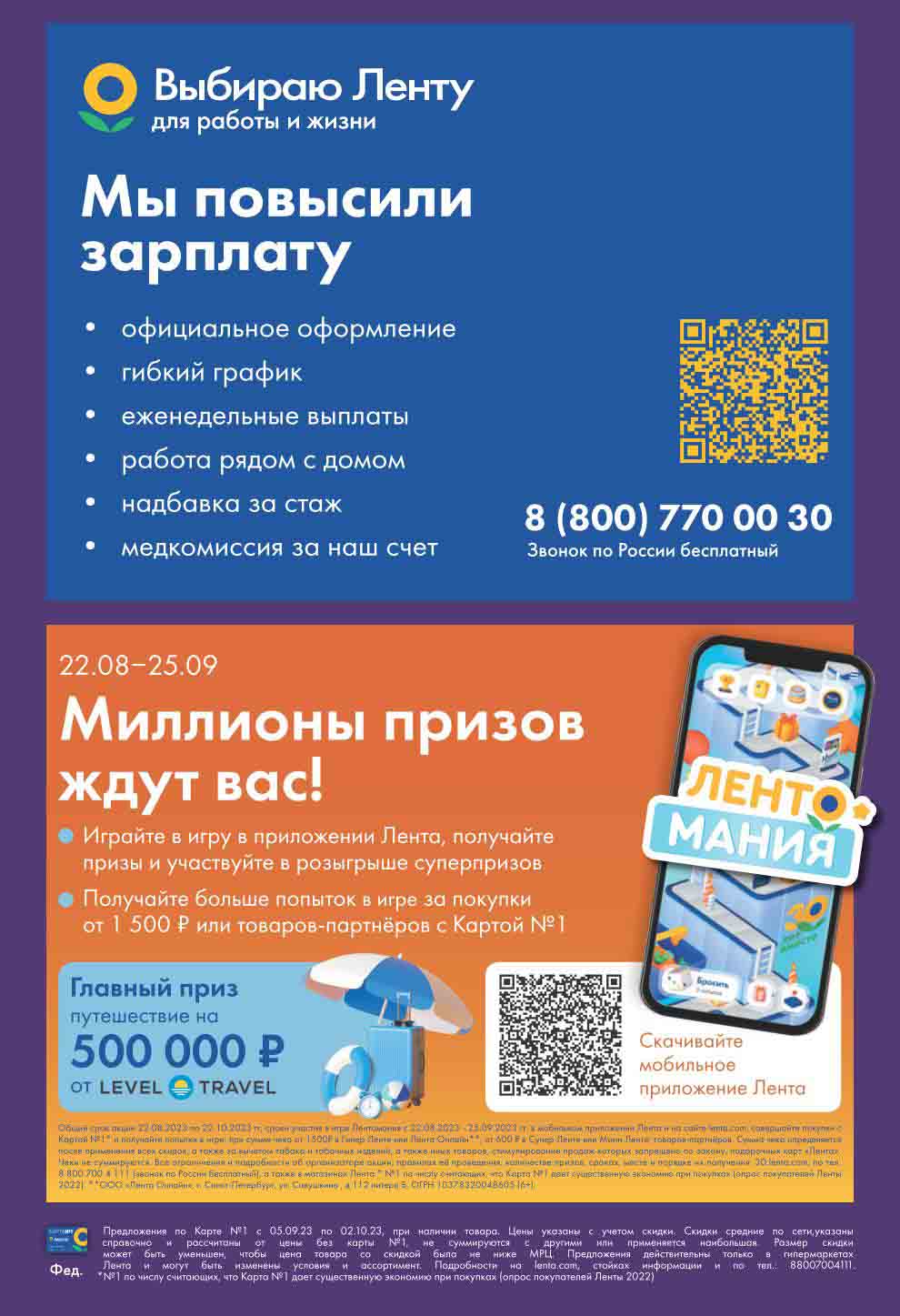 Подробную информацию об правилах, наличии товаров, адресах и скидках узнавайте в магазинах или по тел. 8-800-700-41-11 и на сайте: lenta.com