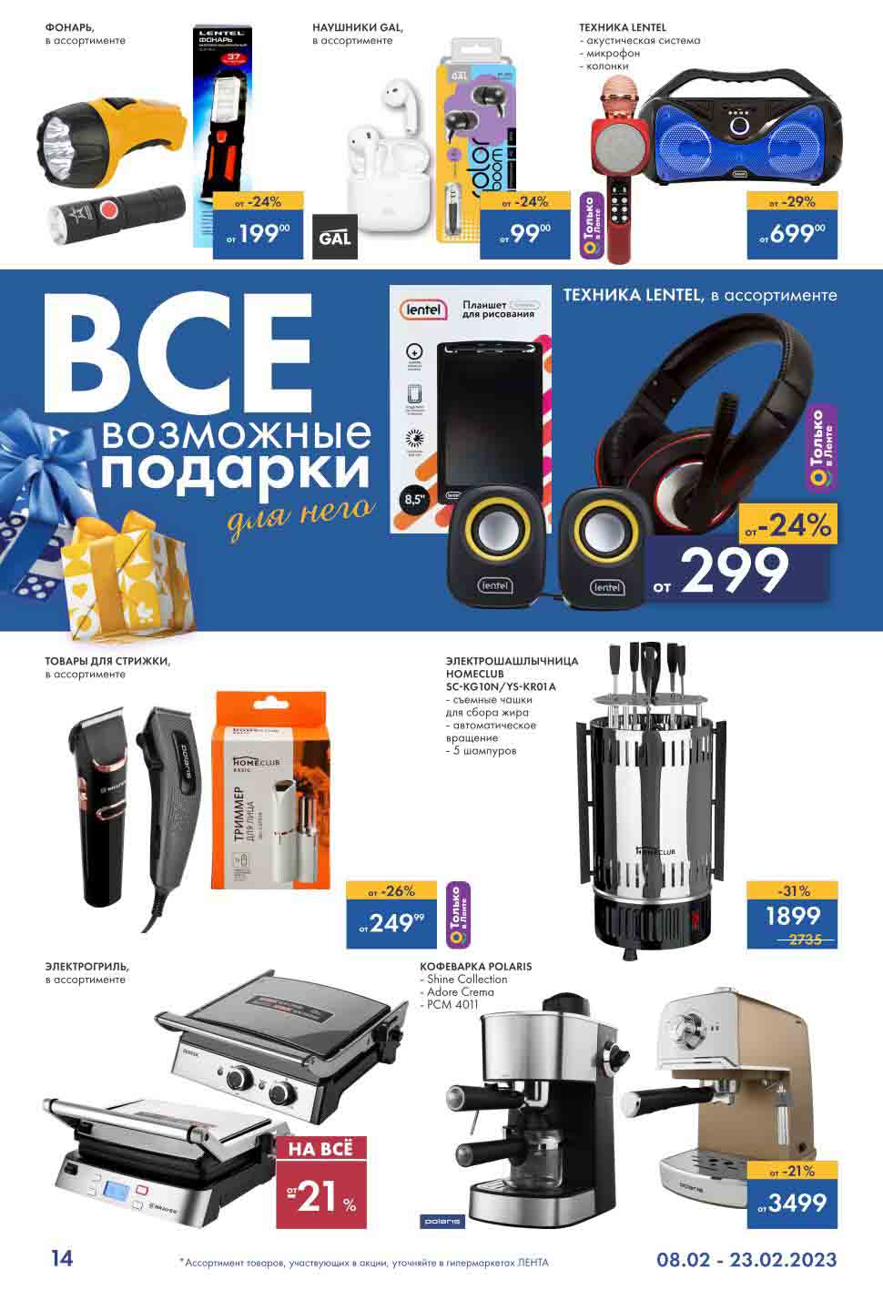 Гипер Лента акции с 8 февраля — 23 февраля 2023. Каталог Подарки для него