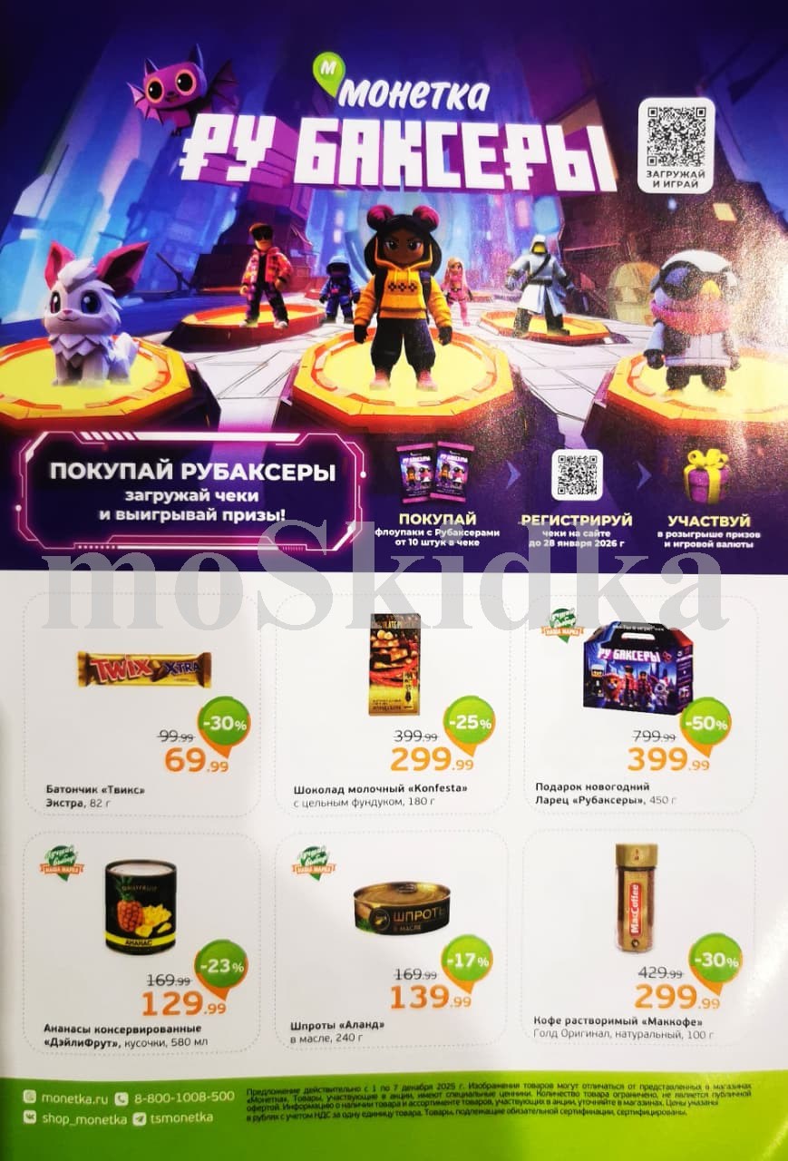Подробную информацию об правилах, наличии товаров, адресах и скидках узнавайте в магазинахили по тел.: 8 800 1008 500и на сайте: monetka.ru