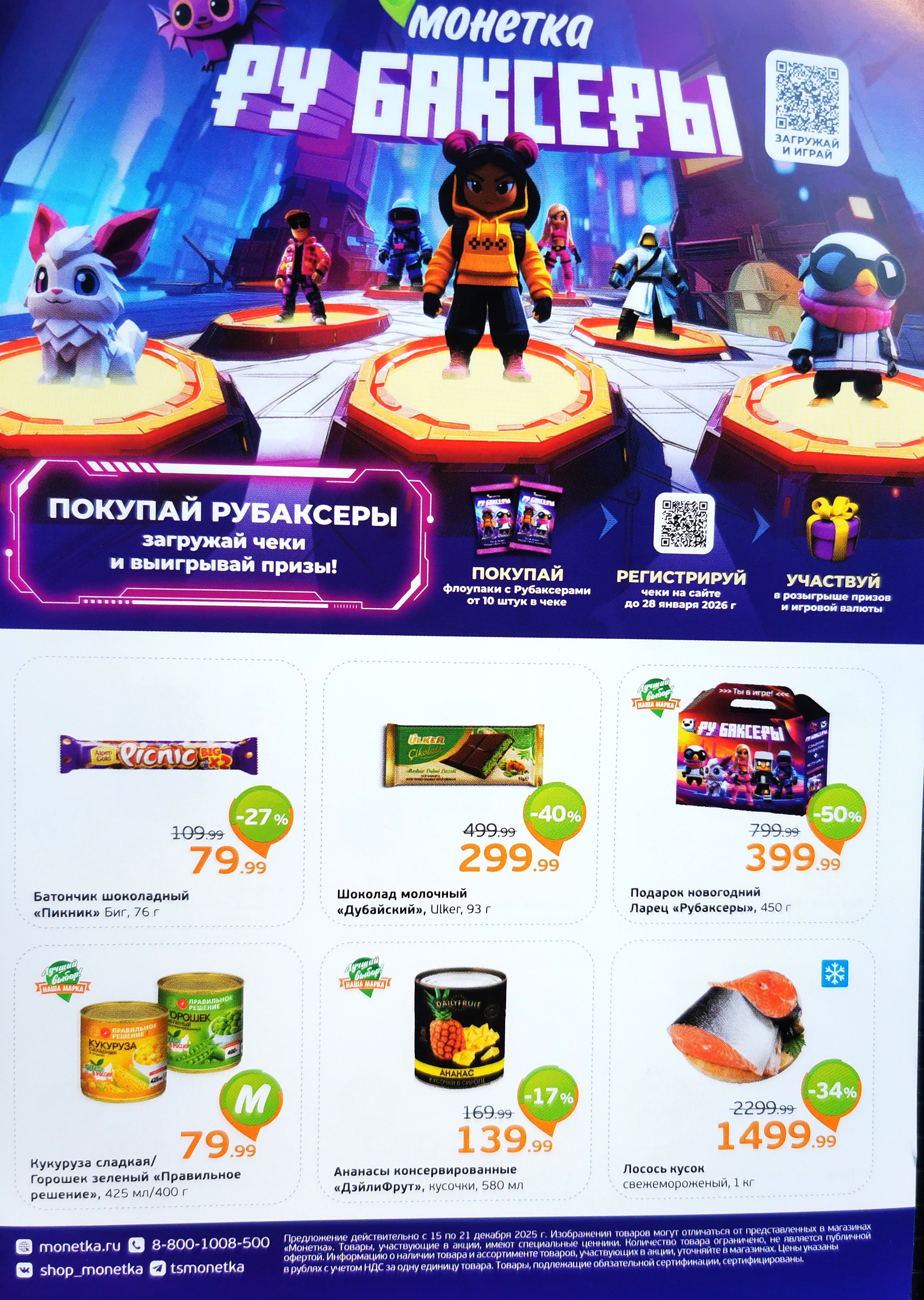 Подробную информацию об правилах, наличии товаров, адресах и скидках узнавайте в магазинахили по тел.: 8 800 1008 500и на сайте: monetka.ru