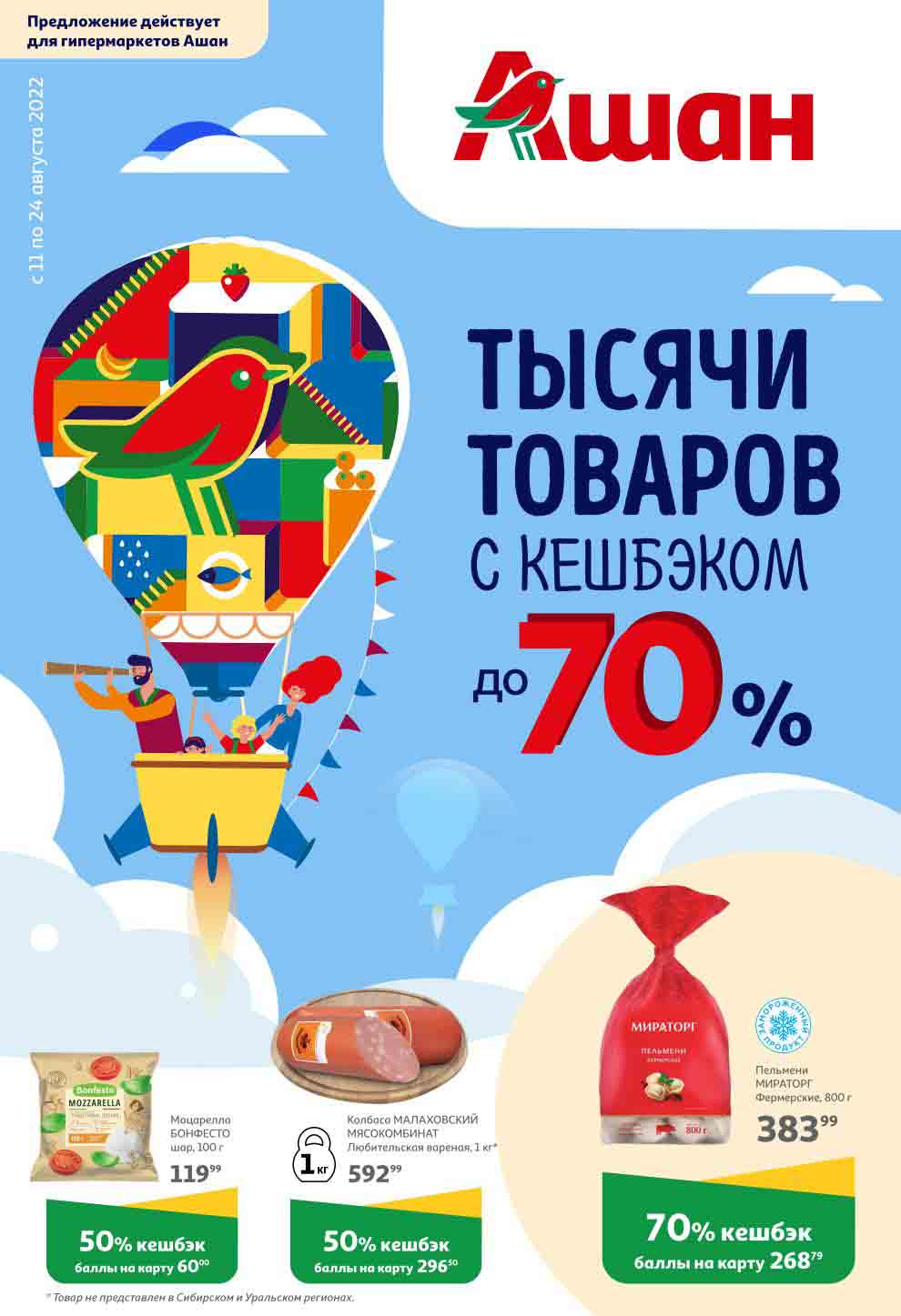 Кешбэк до 70% в Ашан с 11 августа — 24 августа 2022