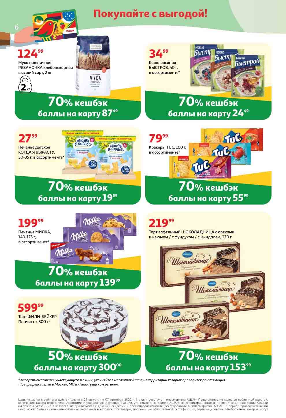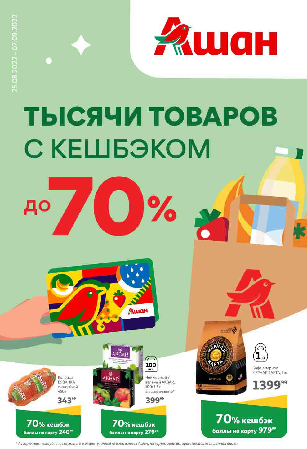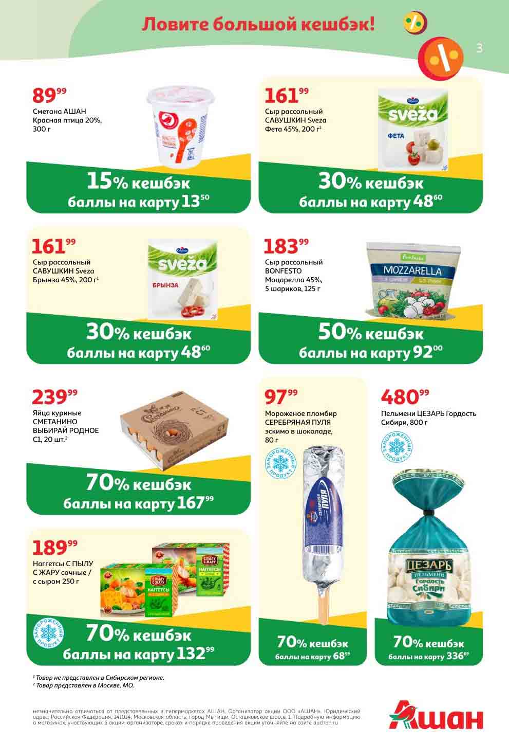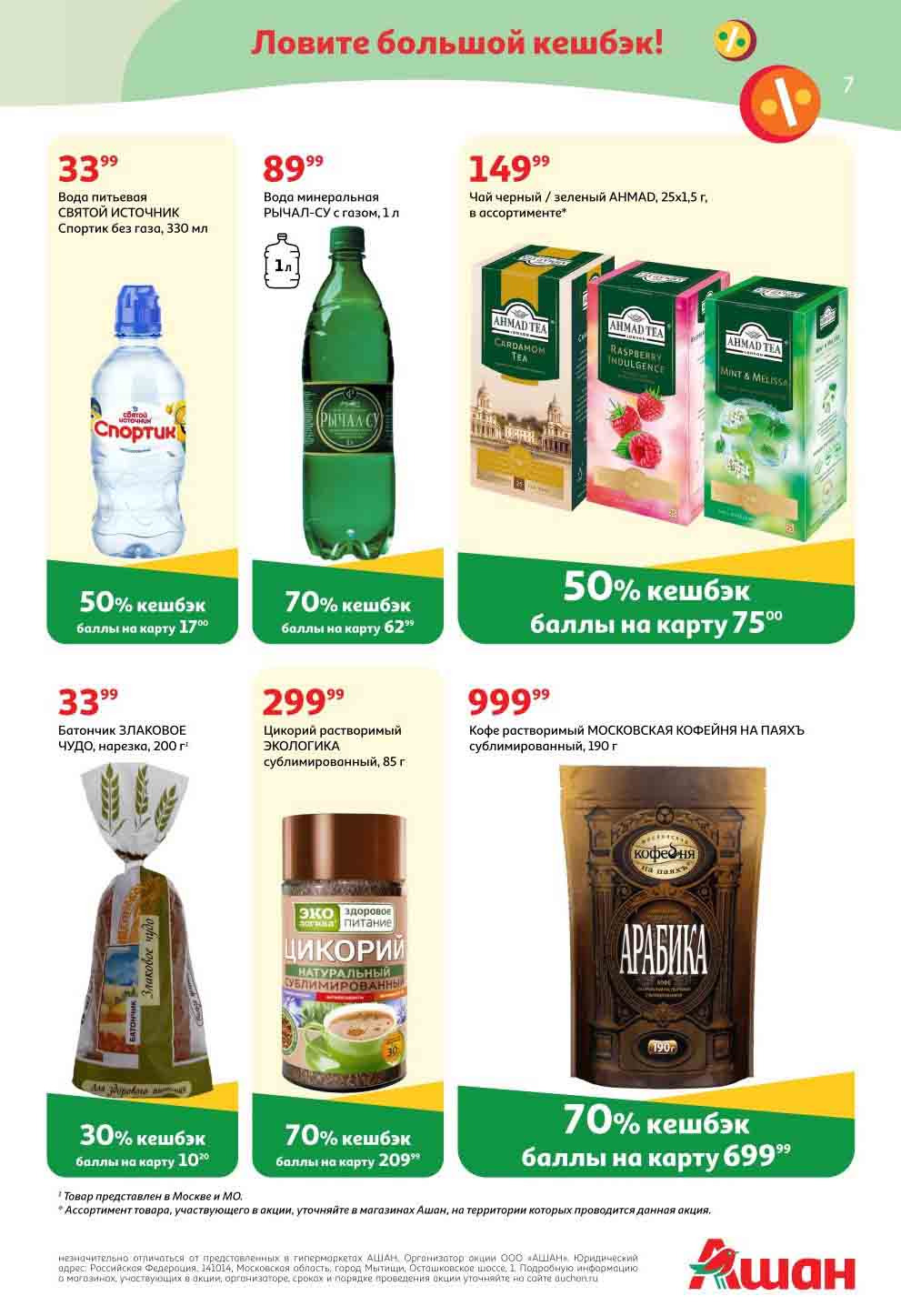 На страницах каталога Ашан вы найдете все свои любимые продукты, которые сейчас предлагаются в супермаркете. Не пропустите последние специальные предложения и сэкономьте на покупках. Предложение действительно при наличии товара на прилавках. Скидки на товары, указанные в каталоге, не суммируются с другими скидками. Изображения товаров могут незначительно отличаться от представленных на полках. Цены по акции Ашан действуют в городах: Москва. Балашиха. Химки. Подольск. Королев. Мытищи. Люберцы. Электросталь. Коломна. Одинцово. Железнодорожный, Серпухов, Орехово-Зуево. Красногорск, Щелково, Сергиев Посад, Пушкино. Жуковский, Ногинск, Раменское и многих других населенных пунктах Московского региона.