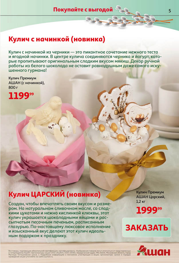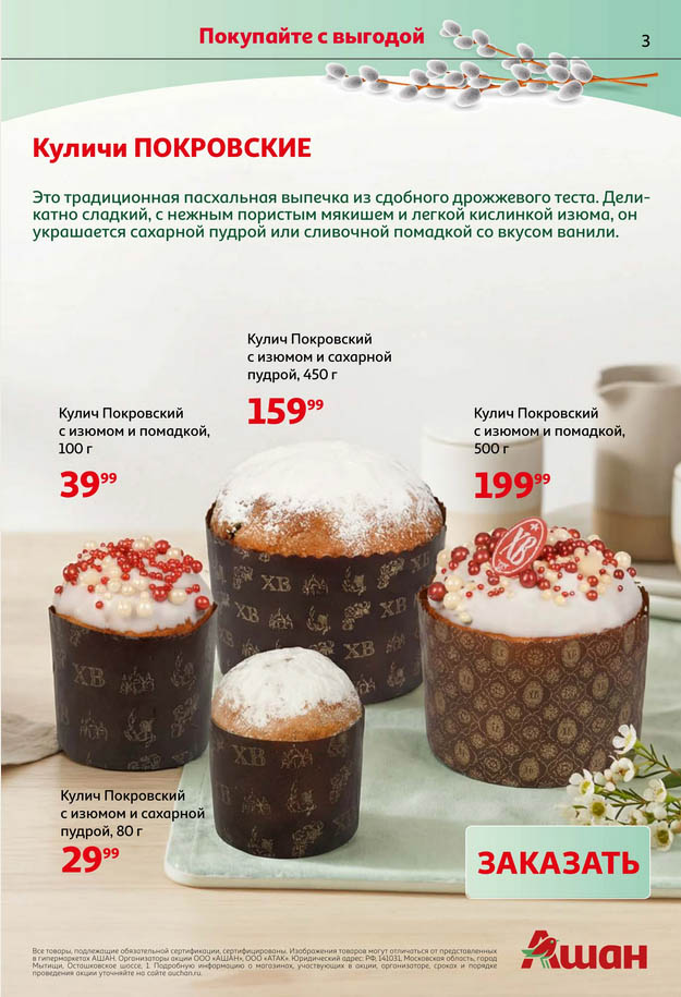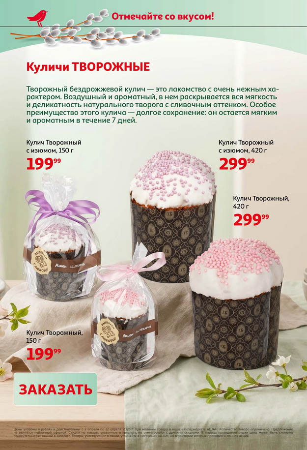 Куличи под заказ по акции в Ашан с 2 апреля — 12 апреля 2026