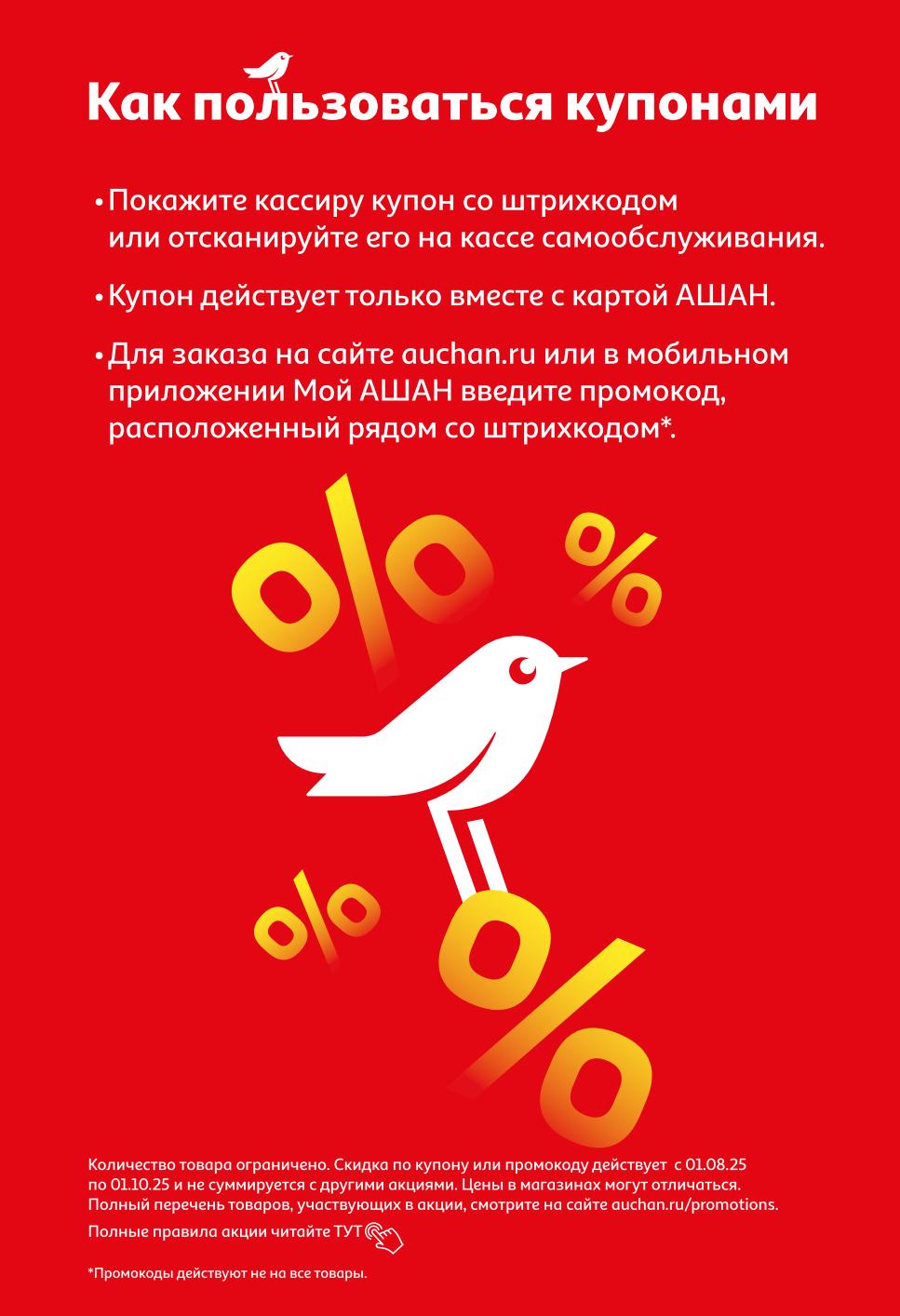Подробную информацию об правилах, адресах и скидках узнавайте в магазинах или по тел. 8 800 700-58-00 и на сайте: auchan.ru