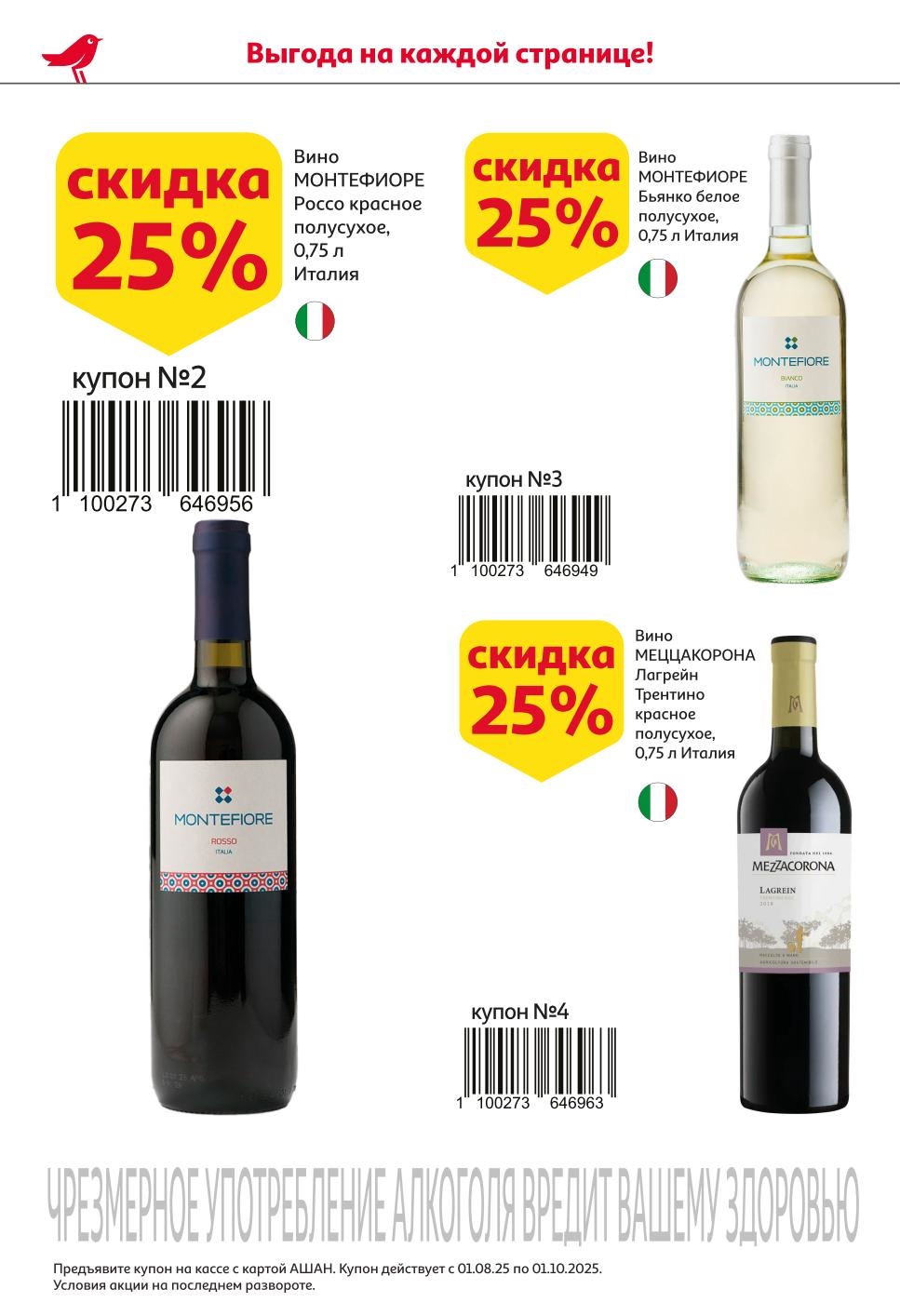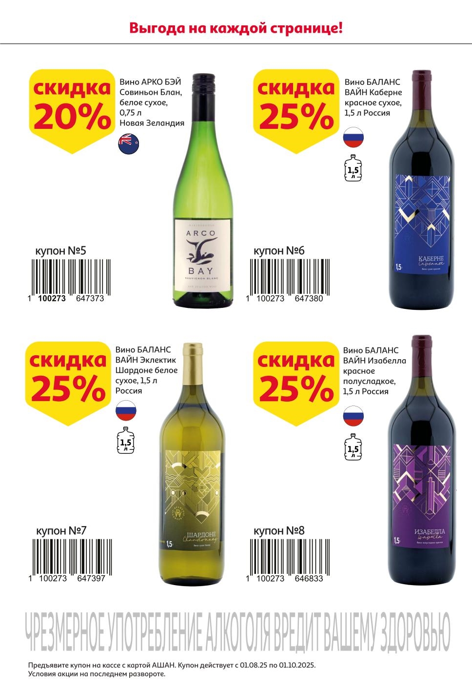 На страницах каталога Ашан вы найдете все свои любимые продукты, которые сейчас предлагаются в супермаркете. Не пропустите последние специальные предложения и сэкономьте на покупках. Предложение действительно при наличии товара на прилавках. Скидки на товары, указанные в каталоге, не суммируются с другими скидками. Изображения товаров могут незначительно отличаться от представленных на полках. Цены по акции Ашан действуют в городах: Москва. Балашиха. Химки. Подольск. Королев. Мытищи. Люберцы. Электросталь. Коломна. Одинцово. Железнодорожный, Серпухов, Орехово-Зуево. Красногорск, Щелково, Сергиев Посад, Пушкино. Жуковский, Ногинск, Раменское и многих других населенных пунктах Московского региона.