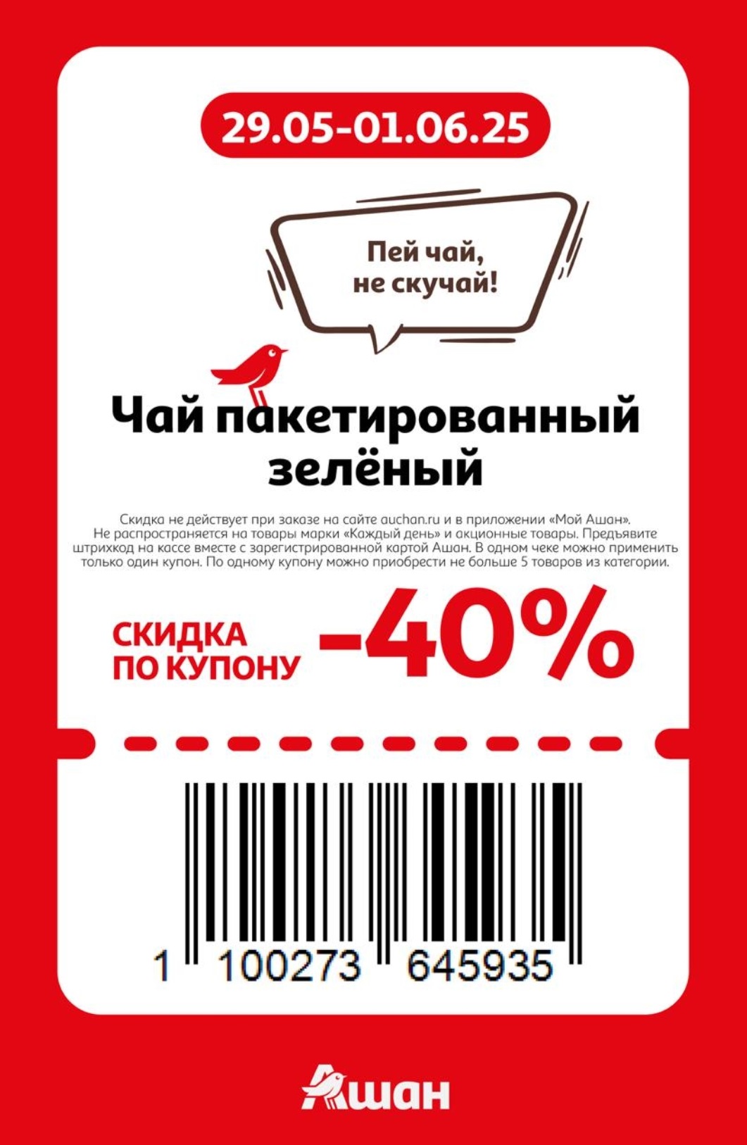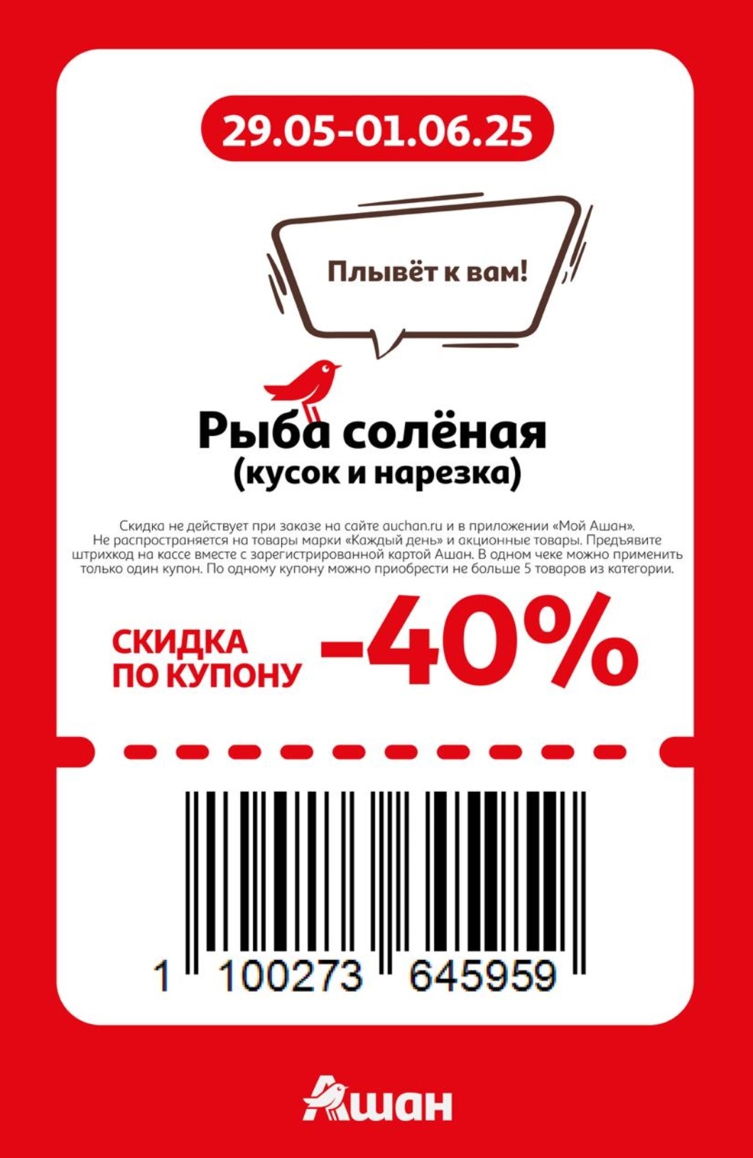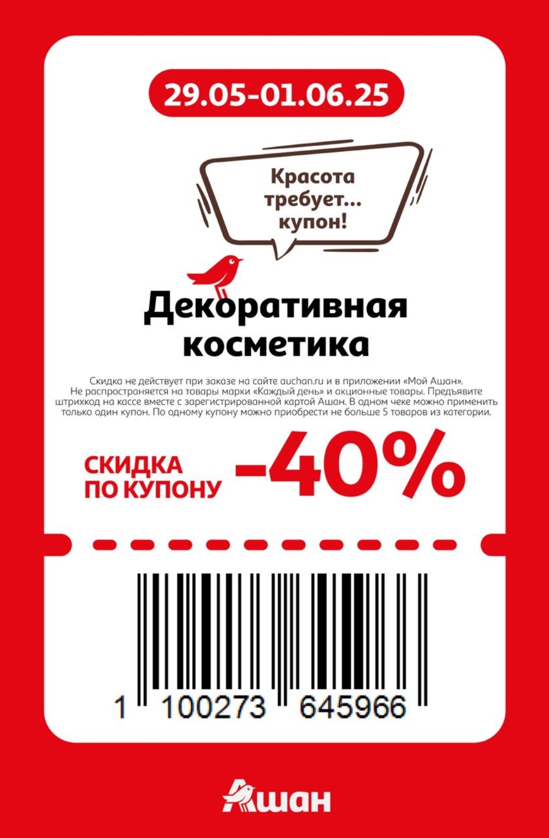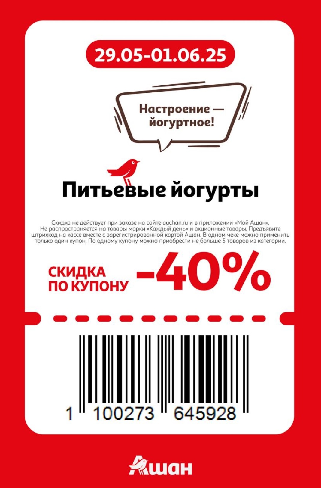 Представлены различные товары, которые предлагаются по выгодным ценам в магазинах Ашан по акции с 29 мая — 1 июня 2025 года. Наибольшая выгода — на питьевые йогурты (40%), соленую рыбу (40%), чай пакетированный (40%), декоративную косметику (40%). Рекомендуем заранее спланировать покупки, чтобы максимально использовать чудо купоны.