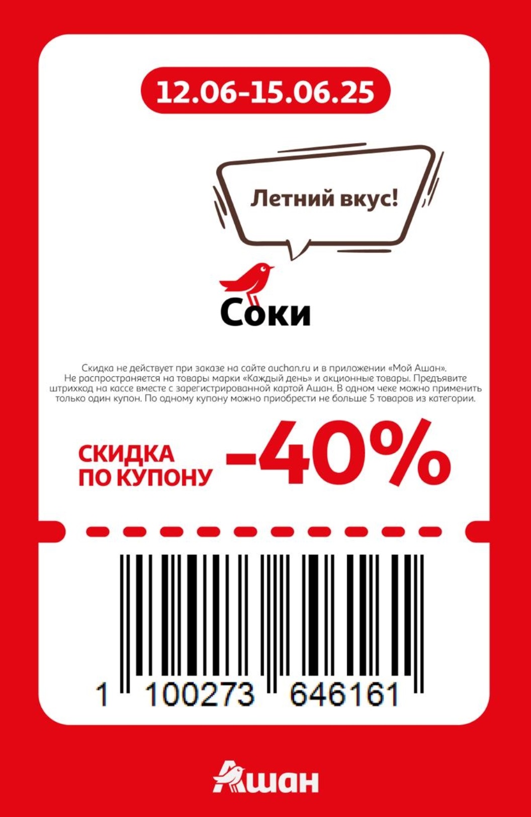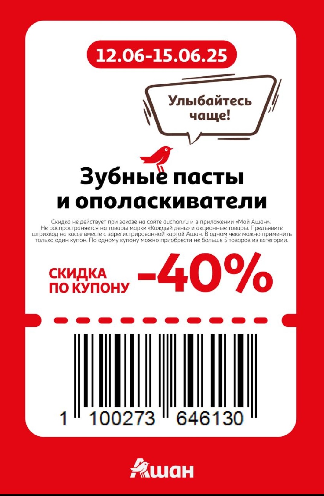 Представлены различные товары, которые предлагаются по выгодным ценам в магазинах Ашан по акции с 12 июня — 15 июня 2025 года. Наибольшая выгода — на зефир и пастилу (50%), соки (40%), зубные пасты (40%). Рекомендуем заранее спланировать покупки, чтобы максимально использовать чудо купоны.
