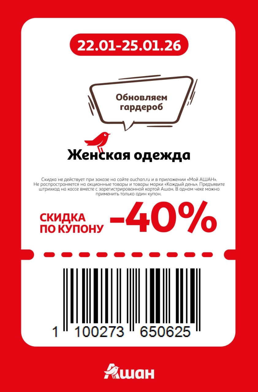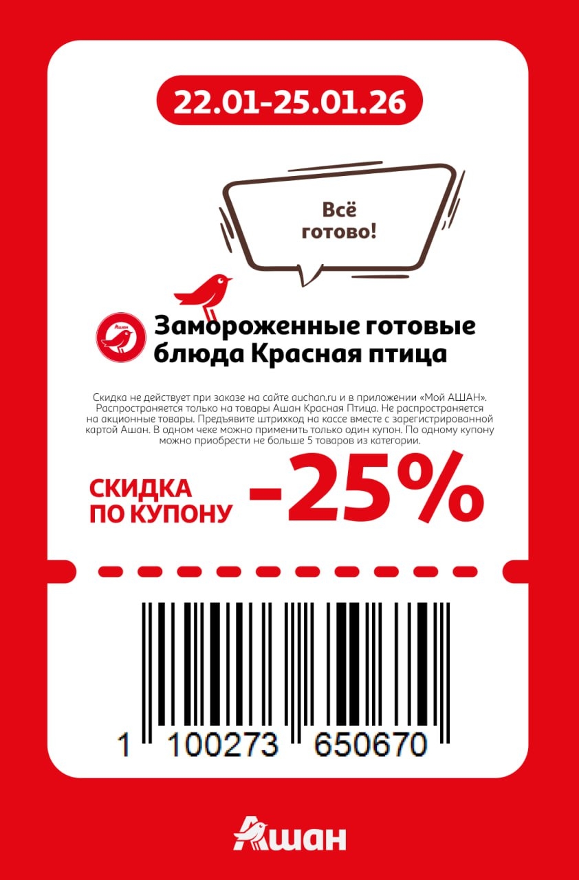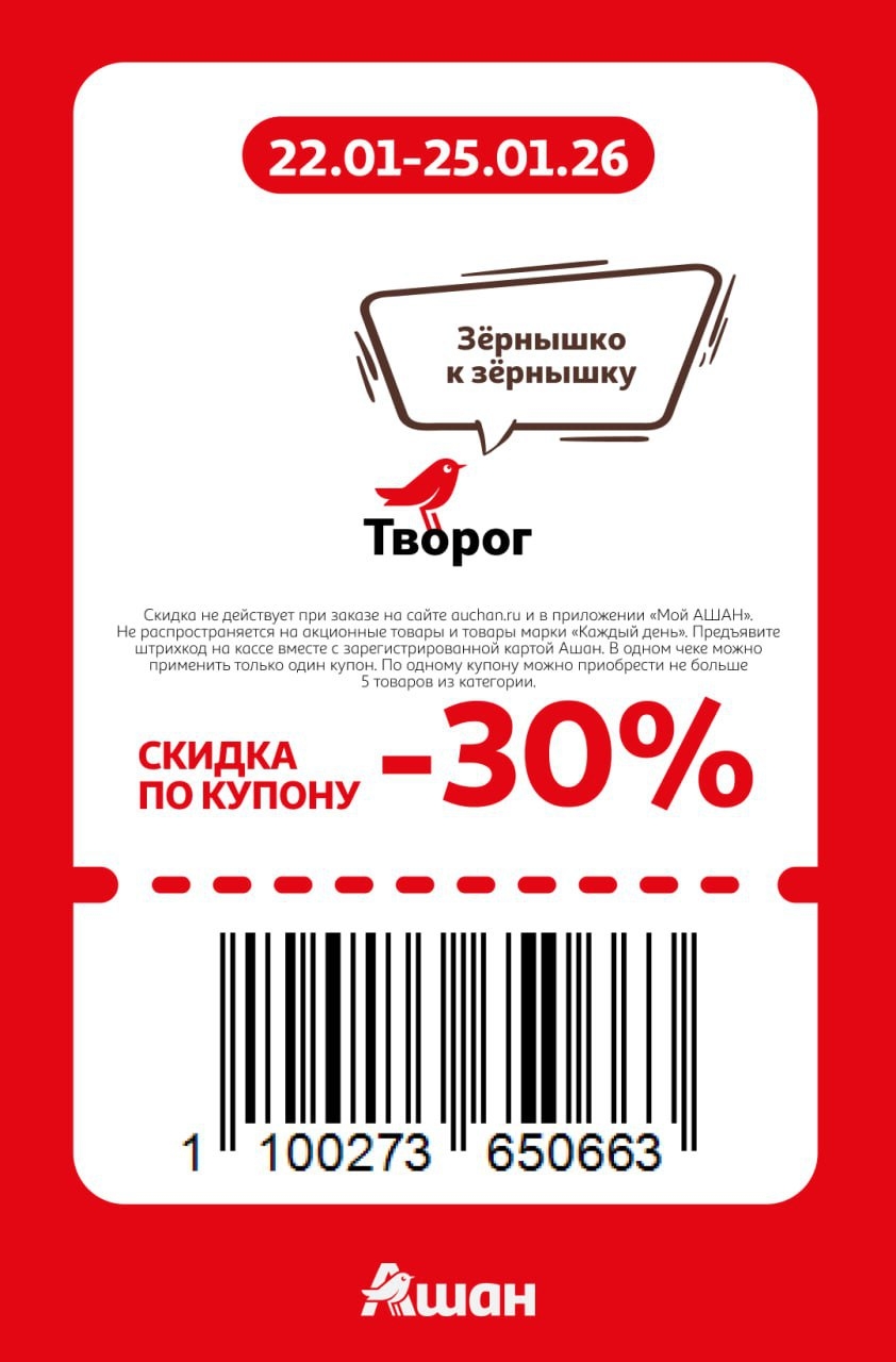 Представлены различные товары, которые предлагаются по выгодным ценам в магазинах Ашан по акции с 22 января — 25 января 2026 года. Наибольшая выгода — парфюмерию (50%), маски для лица (50%), зефир и пастила (40%). Рекомендуем заранее спланировать покупки, чтобы максимально использовать чудо купоны.