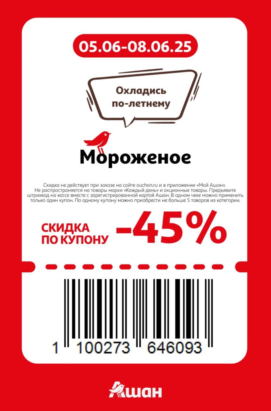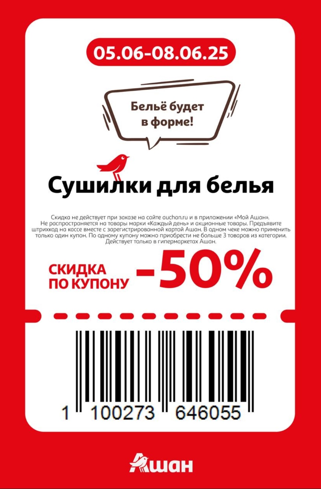Представлены различные товары, которые предлагаются по выгодным ценам в магазинах Ашан по акции с 5 июня — 8 июня 2025 года. Наибольшая выгода — на сушилки для белья (50%), чай листовой черный (40%), мороженое (45%). Рекомендуем заранее спланировать покупки, чтобы максимально использовать чудо купоны.
