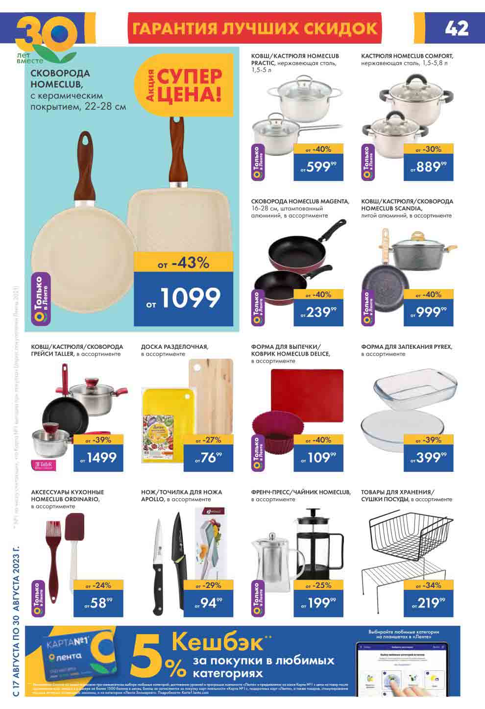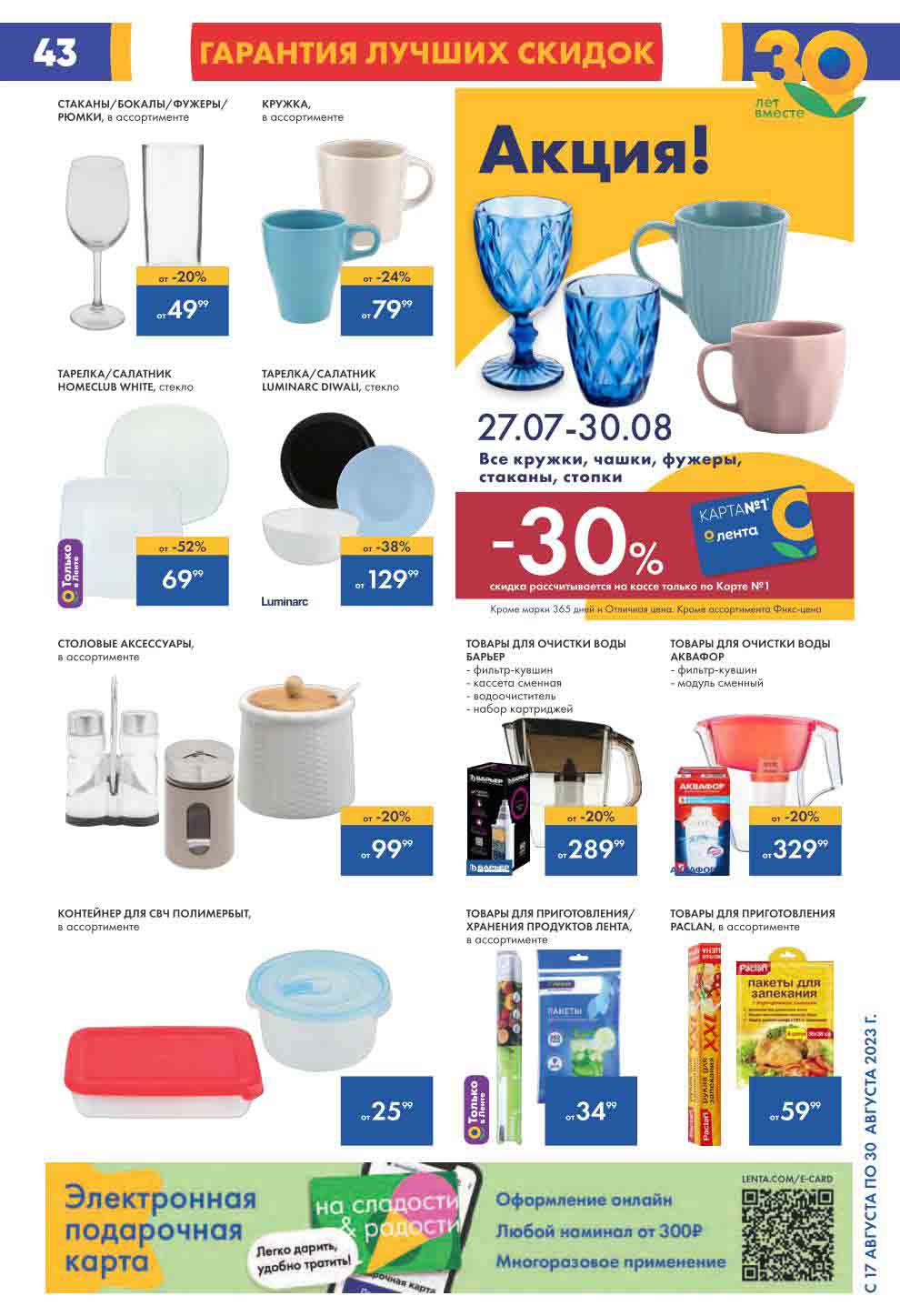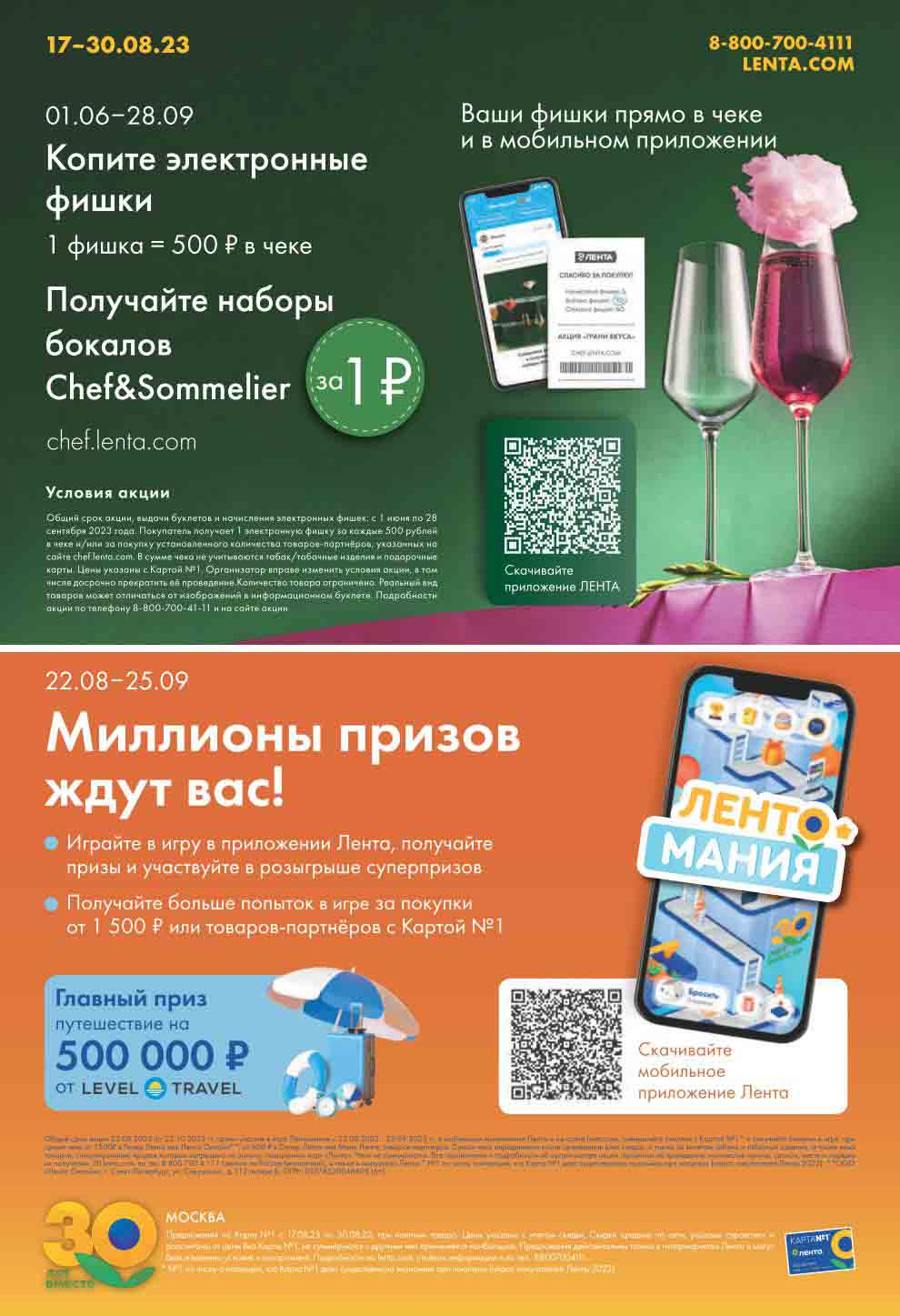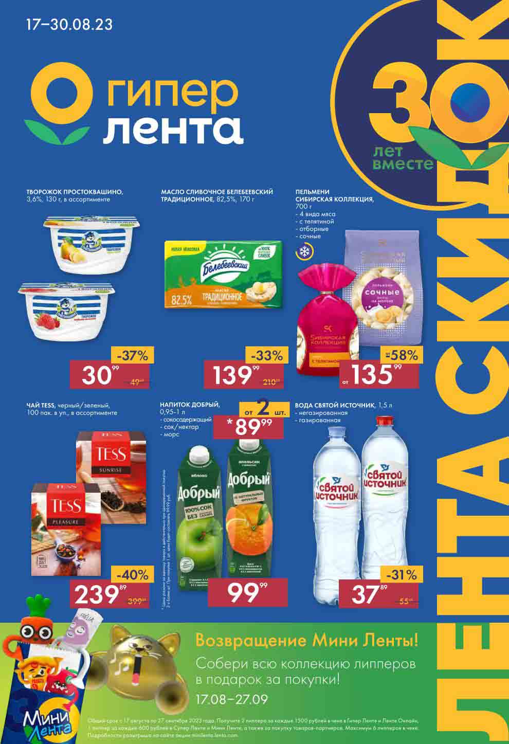 Лента акции с 17 августа — 30 августа 2023. Еженедельный каталог гипермаркета