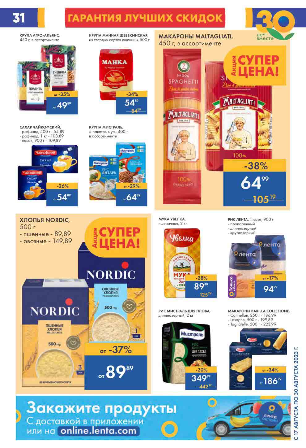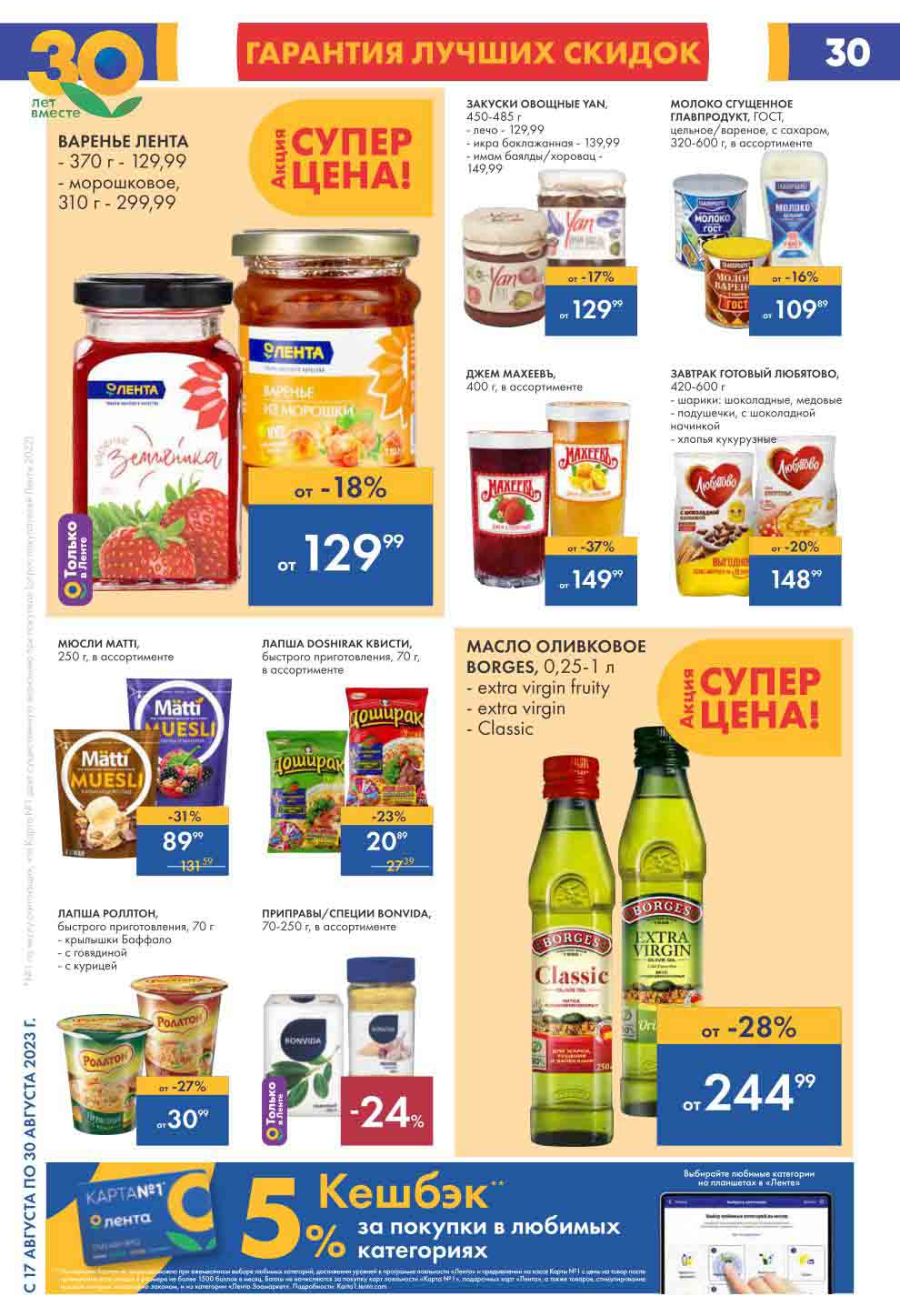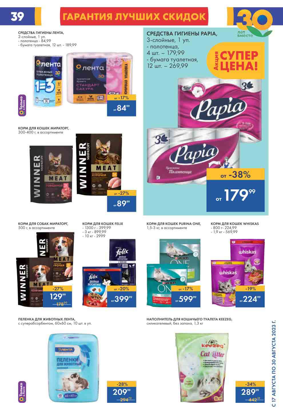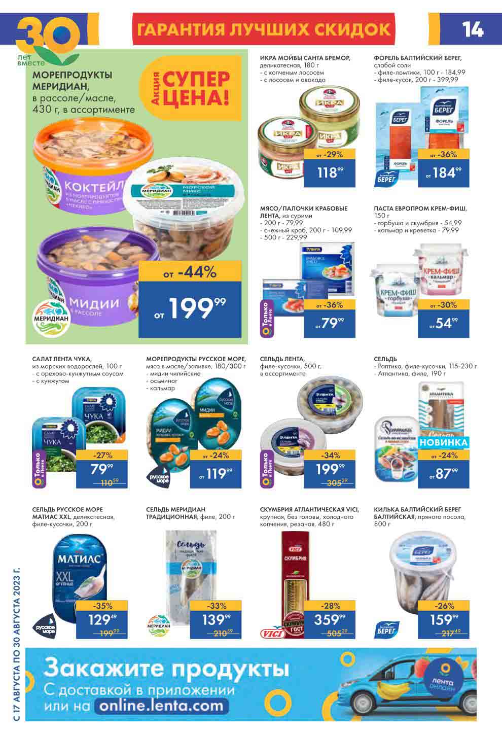 Лента акции с 17 августа — 30 августа 2023. Еженедельный каталог гипермаркета
