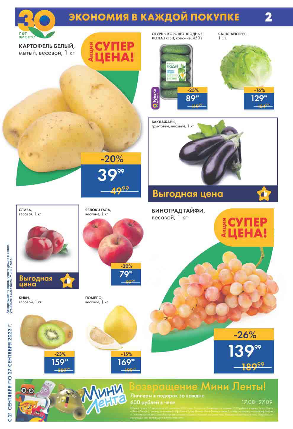 Лента акции с 21 сентября — 27 сентября 2023. Мини Лента каталог еженедельных скидок