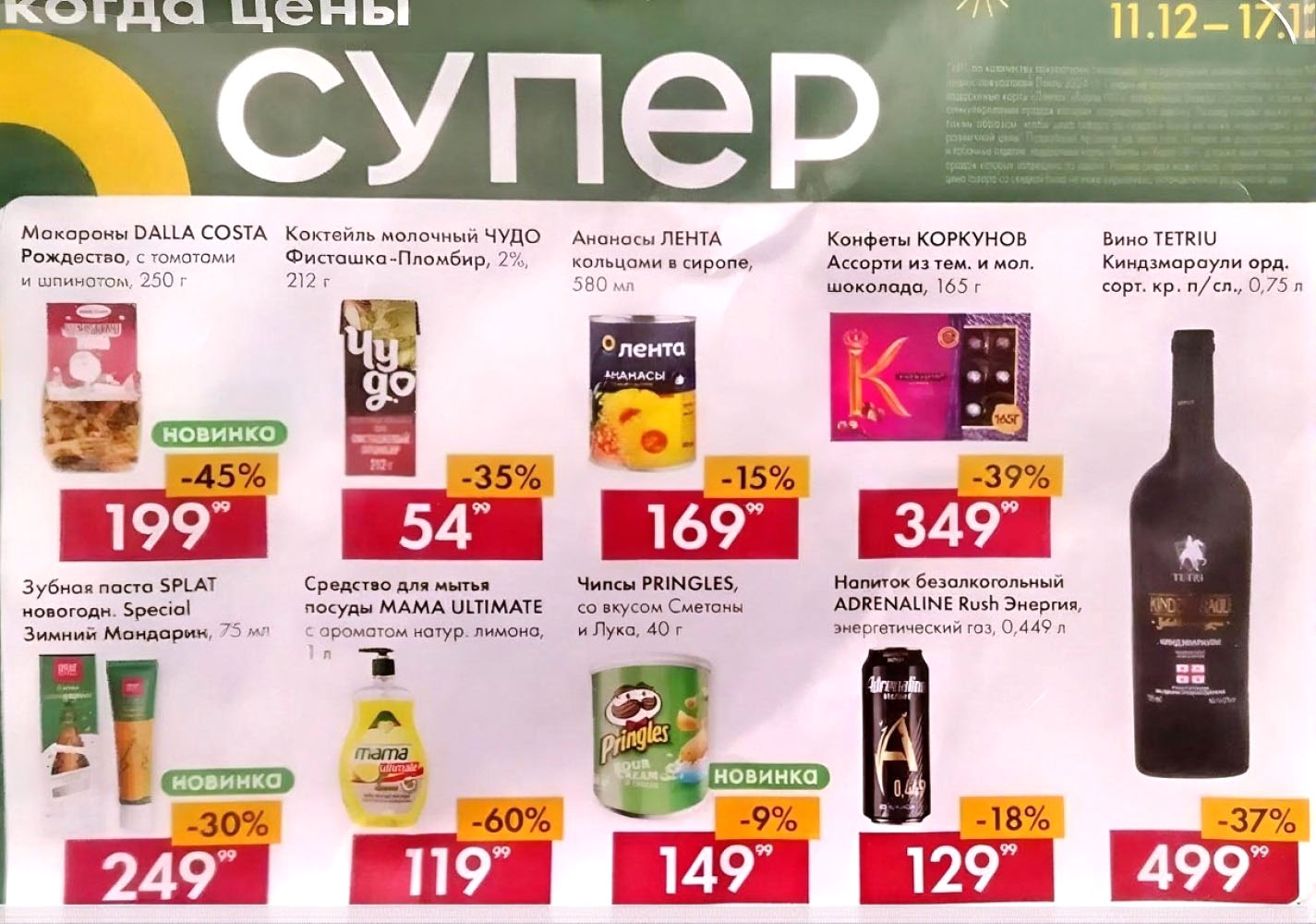 Выгодные предложения на макароны, коктейль, ананасы консервированные. Скидки на конфеты, зубную пасту, чипсы до 17 декабря 2025. Акция по Карте №1