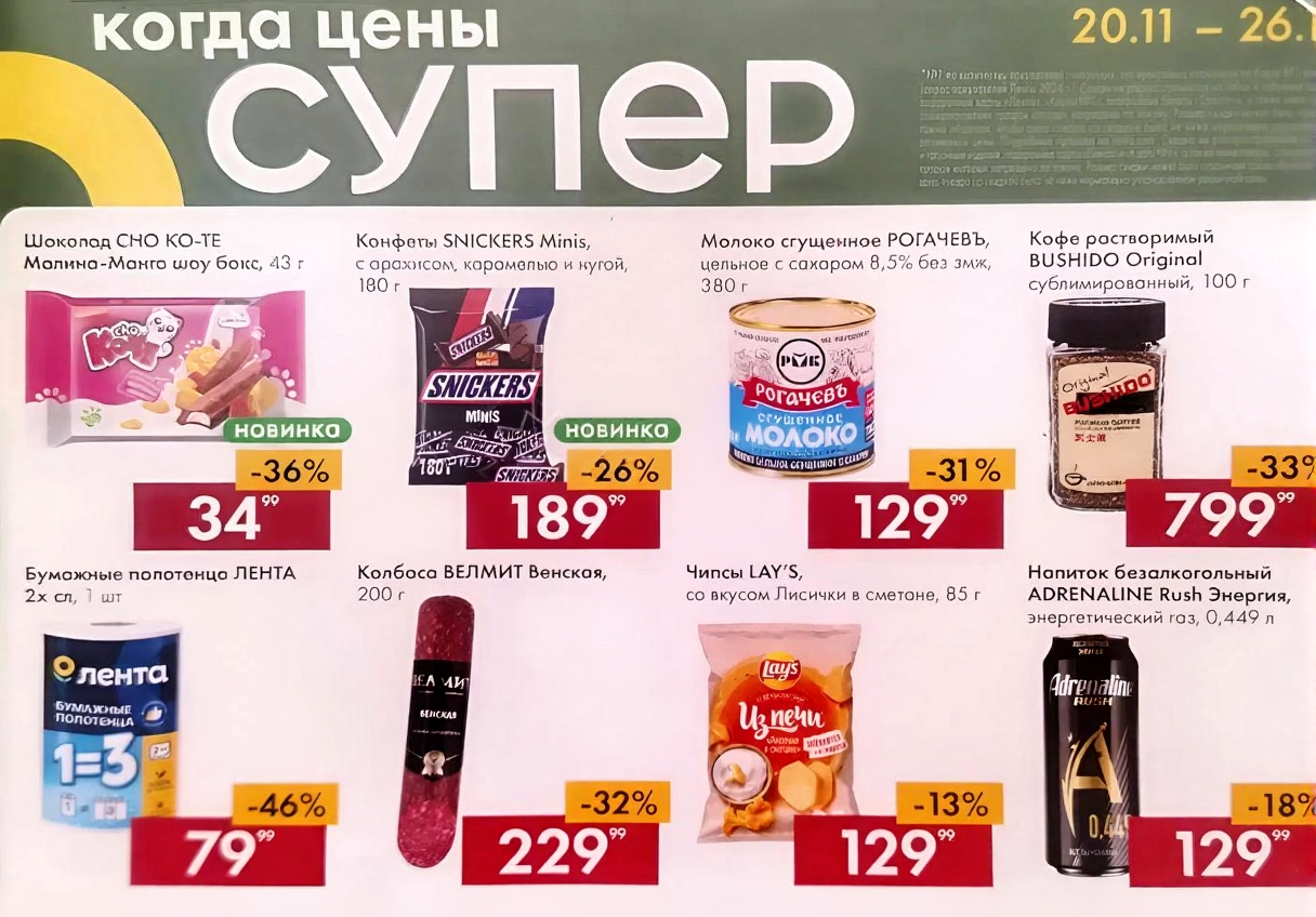 Лента супермаркет акции с 20 ноября — 26 ноября 2025