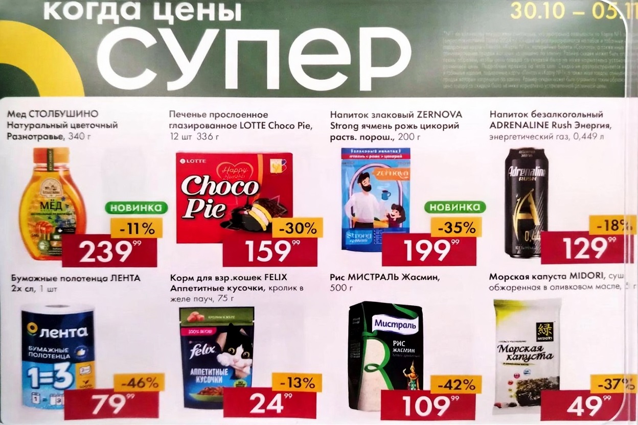 Выгодные предложения на мед Столбушино, бумажные полотенца, энергетик, корм для кошек. Скидки на печенье, напиток злаковый, рис. Акция по Карте №1