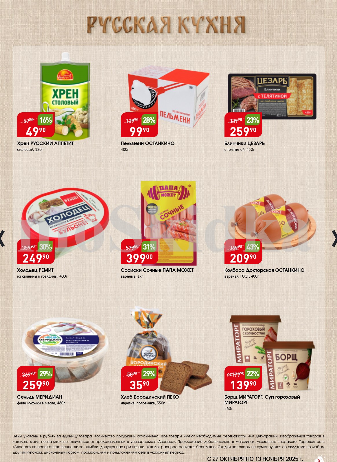 Магазин Авоська акции с 27 октября — 13 ноября 2025. Каталог Сезон русской кухни