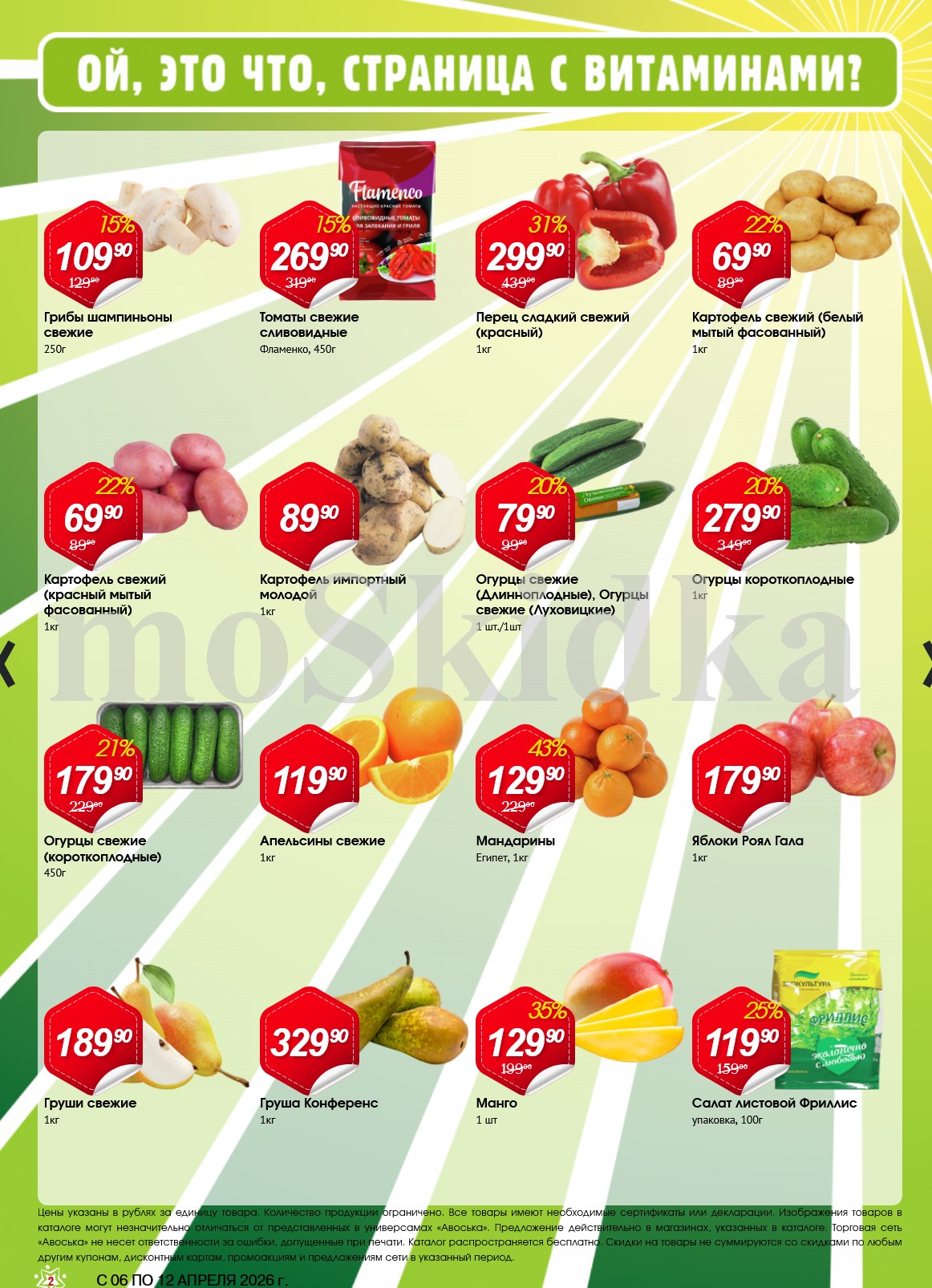 Каталог акций «Авоська» — это ваш персональный навигатор в мире выгодных покупок в формате «магазин у дома». Редакция моСкидка.ру ежедневно мониторит актуальные предложения сети супермаркетов «Авоська». В этом обзоре мы собрали лучшие скидки недели на свежие продукты, товары повседневного спроса, сезонные предложения и эксклюзивные акции на товары собственных торговых марок. Планируйте визит в магазин заранее, чтобы успеть купить продукты с ежедневной поставкой по специальным ценам и воспользоваться выгодными предложениями