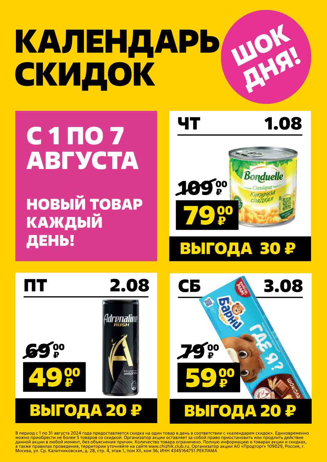 Магазин Чижик акции с 1 августа — 7 августа 2024. Товары недели