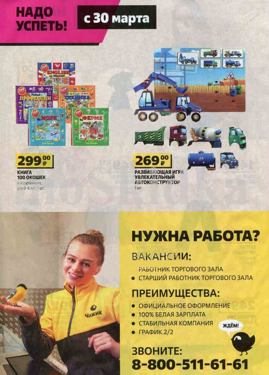 На страницах каталога Чижик вы найдете все свои любимые товары, которые сейчас предлагаются в супермаркете. Не пропустите последние специальные предложения и сэкономьте на покупках. Предложение ограниченно и действует в указанные сроки и пока товар есть в наличии. Внешний вид товара может отличаться от представленных изображений. Подробности об правилах и скидках узнавайте в магазинах сети. Цены по акции Чижик действуют в городах: Москва, Балашиха, Химки, Подольск, Королев, Мытищи, Люберцы, Электросталь, Коломна, Одинцово, Железнодорожный, Серпухов, Орехово-Зуево, Красногорск, Щелково, Сергиев Посад, Пушкино, Жуковский, Ногинск, Раменское, Клин, Воскресенск, Домодедово и многих других населенных пунктах Московского региона.
