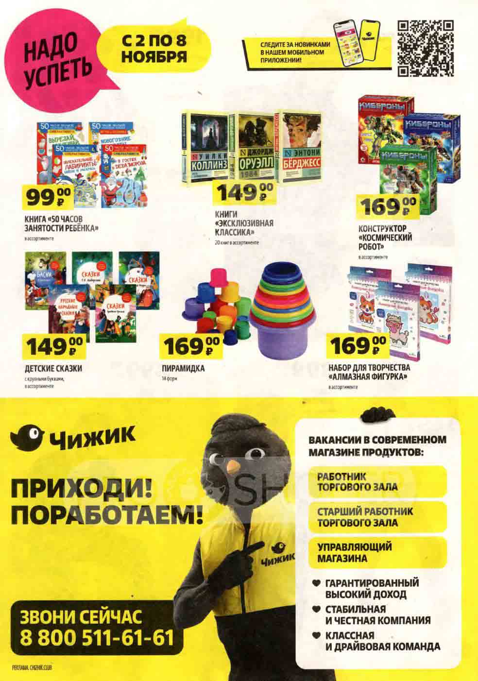 Подробную информацию об правилах, наличии товаров, адресах и скидках узнавайте в магазинах или по тел. Почта: 112@chizhik.club и на сайте: chizhik.club