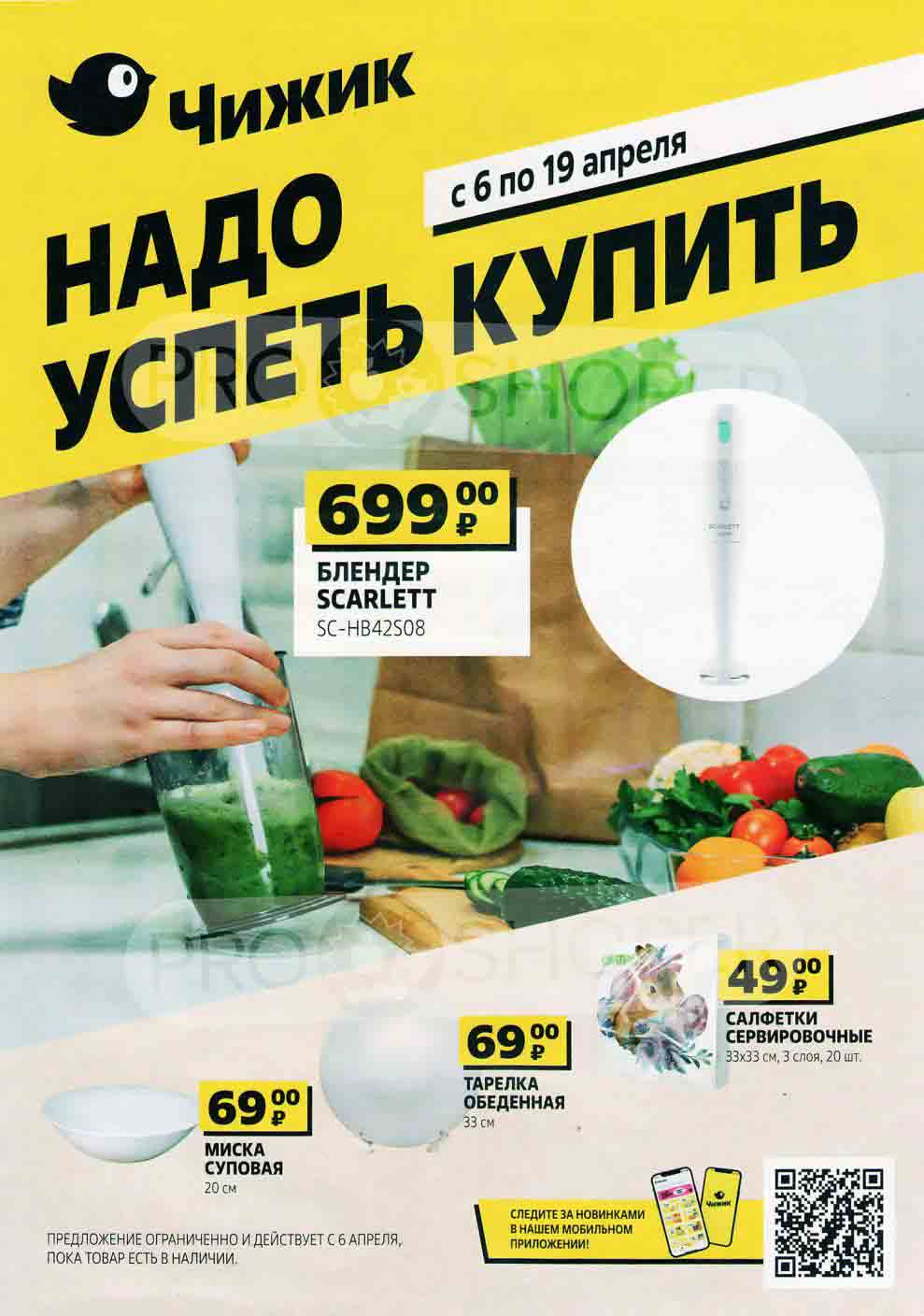 На страницах каталога Чижик вы найдете все свои любимые товары, которые сейчас предлагаются в супермаркете. Не пропустите последние специальные предложения и сэкономьте на покупках. Предложение ограниченно и действует в указанные сроки и пока товар есть в наличии. Внешний вид товара может отличаться от представленных изображений. Подробности об правилах и скидках узнавайте в магазинах сети. Цены по акции Чижик действуют в городах: Москва, Балашиха, Химки, Подольск, Королев, Мытищи, Люберцы, Электросталь, Коломна, Одинцово, Железнодорожный, Серпухов, Орехово-Зуево, Красногорск, Щелково, Сергиев Посад, Пушкино, Жуковский, Ногинск, Раменское, Клин, Воскресенск, Домодедово и многих других населенных пунктах Московского региона.