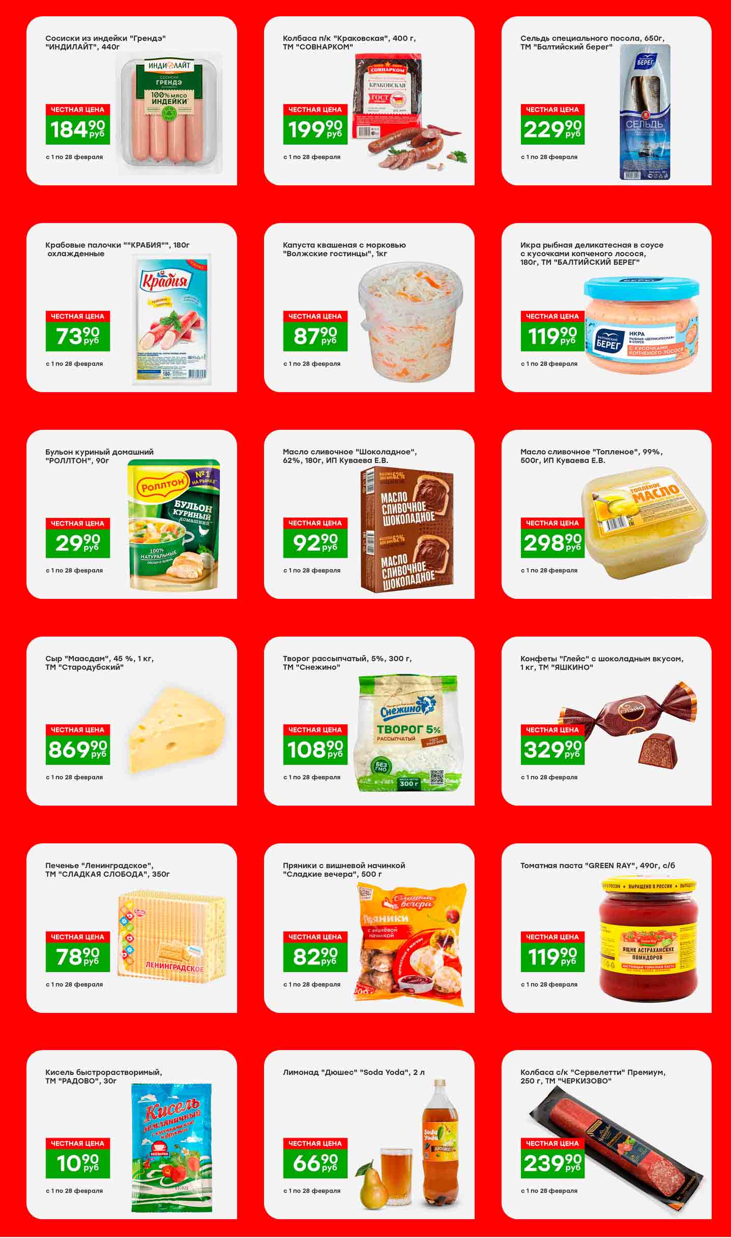 На страницах каталога Победа вы найдете все свои любимые товары, которые сейчас предлагаются в "продскладе". Не пропустите последние специальные предложения и сэкономьте на покупках. Цены по каталогу Победа действуют в городах: Лобня, Балашиха, Ногинск, Ликино-Дулево, Шатура, Жуковский, Раменское, Бронницы, Серпухов, Наро-Фоминск и других населенных пунктах Московского региона.