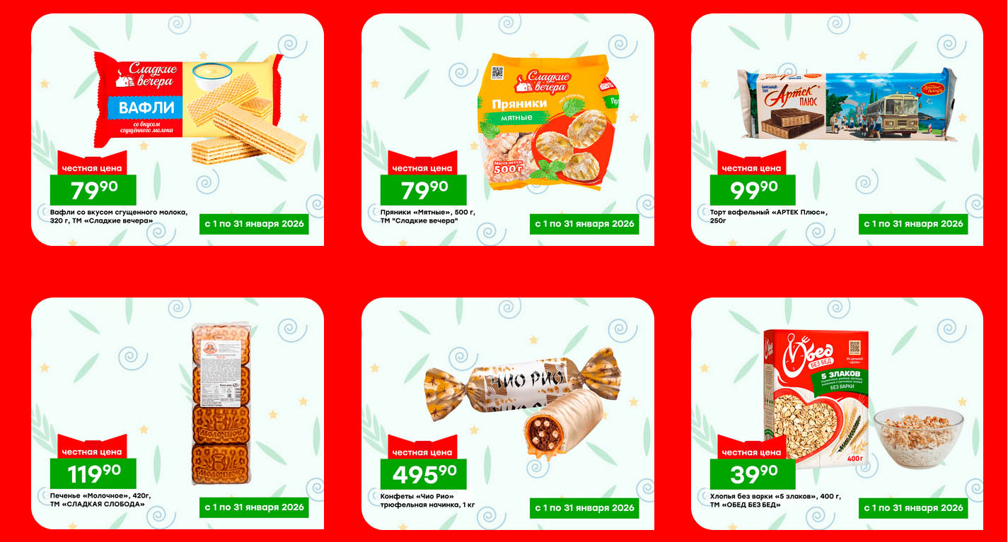На страницах каталога Победа вы найдете все свои любимые товары, которые сейчас предлагаются в "продскладе". Не пропустите последние специальные предложения и сэкономьте на покупках. Цены по каталогу Победа действуют в городах: Лобня, Балашиха, Ногинск, Ликино-Дулево, Шатура, Жуковский, Раменское, Бронницы, Серпухов, Наро-Фоминск и других населенных пунктах Московского региона.