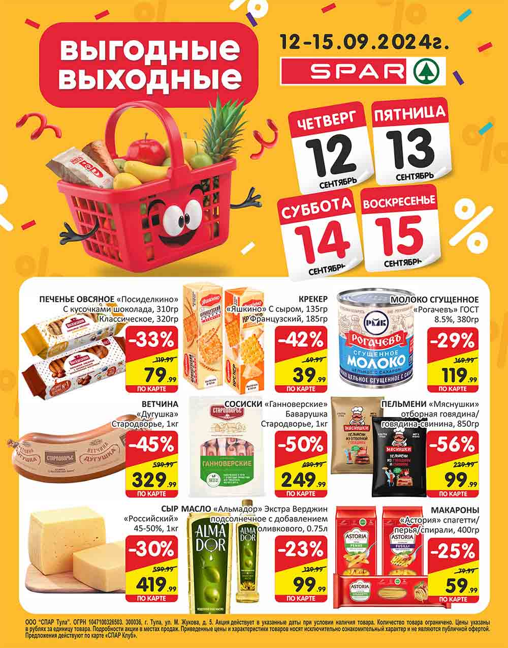 Подробную информацию об правилах, наличии товаров, адресах и скидках узнавайте в магазинах или по тел. 8 800 500 13 29 и на сайте: myspar.ru